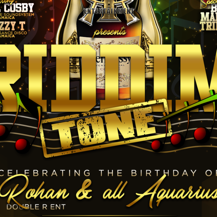 Friday February 9th 2018 - Double R Entertainment Proudly Presents **RIDDIM TONE**... an upscale Reggae & Dancehall experience like no other. Playing all your favorite Riddims and songs from the early 90s onwards that put you in your vibe, and make you feel the Riddim Tone ! Featuring Special Guests Live From Jamaica ! Jazzy T & Bill Cosby !! - So you know your in for some exclusive dubplates! Alongside some of Toronto's Top sounds and djs including - *Blax Dun Da Place* - *Dyce Locke* - *Lindo P* - *Renegade Squad (Mr Biggz)* - *Dj Zee* - *Dj Jagz* - *Fyah Blazin* & More ! Hosted By - *Ameer B* & *Dirty Dez* Celebrating the birthday of Rohan (Double R Ent) and all Aquarius !! All goes down Friday February 9th, 2018 inside Boss Nightclub. 10 Esna Park Dr. Markham. *FREE PARKING* **VERY LIMITED** $10 Early Bird Hard Copy Tickets are available on a first come first serve basis. $15 Advanced tickets available at www.TicketGateway.com or through any of the djs or promoters. For Booth/Birthday/Bottle Reservations or info please contact - Rohan - 647-551-7409 or iamrrent@gmail.com Navin - 416-419-4891 Dawn - 416-821-3296