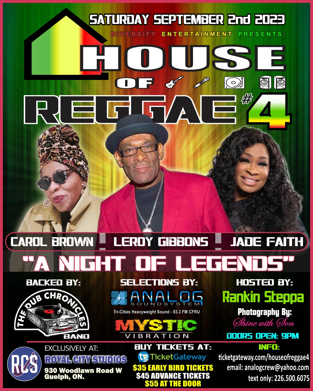 Presenting to you all, "A Night of Legends" with the LEGENDARY Reggae Recording Artists: LEROY GIBBONS, CAROL BROWN and JADE FAITH.
