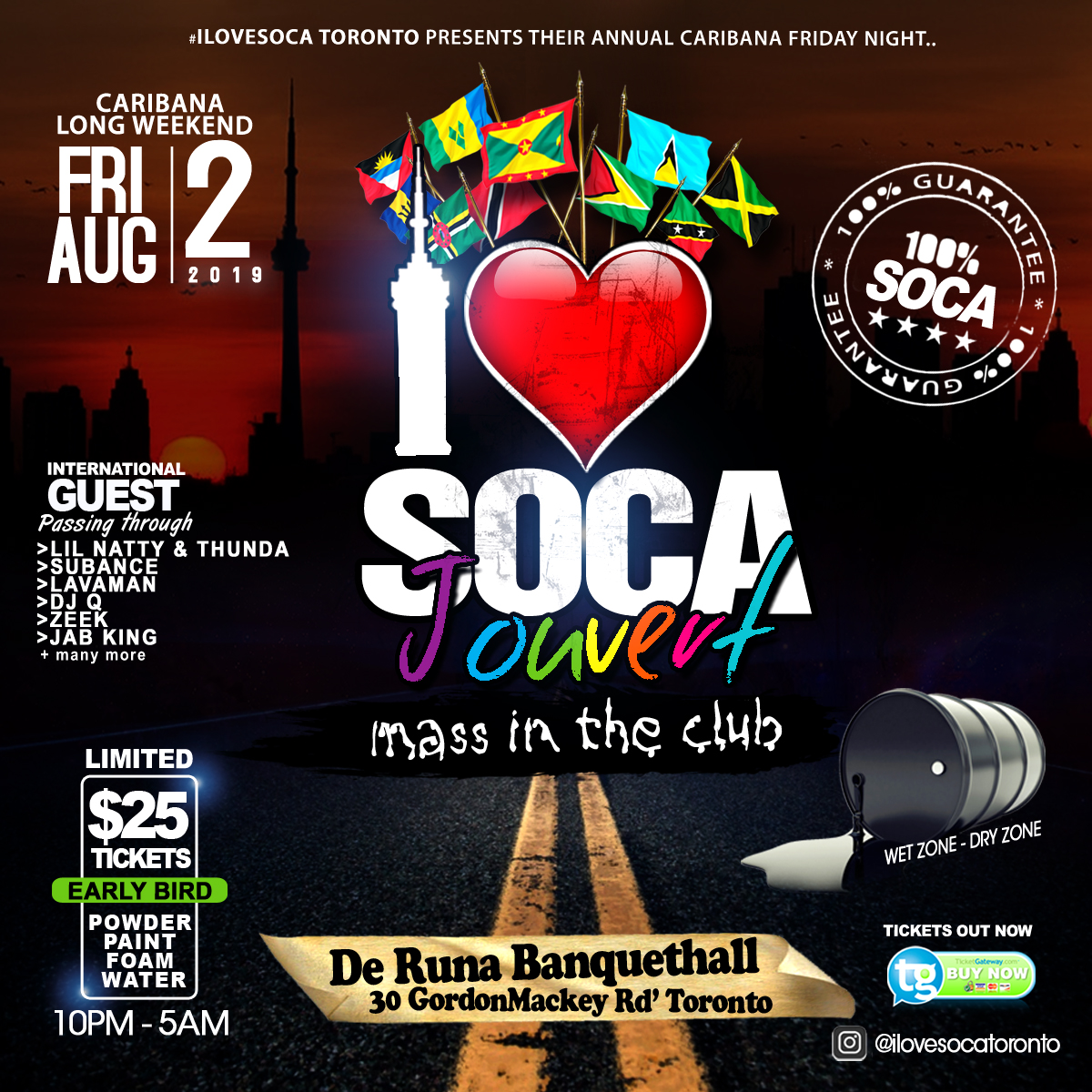 I LOVE SOCA JOUVERT - AUG 2ND - INDOORS + OUTDOORS By