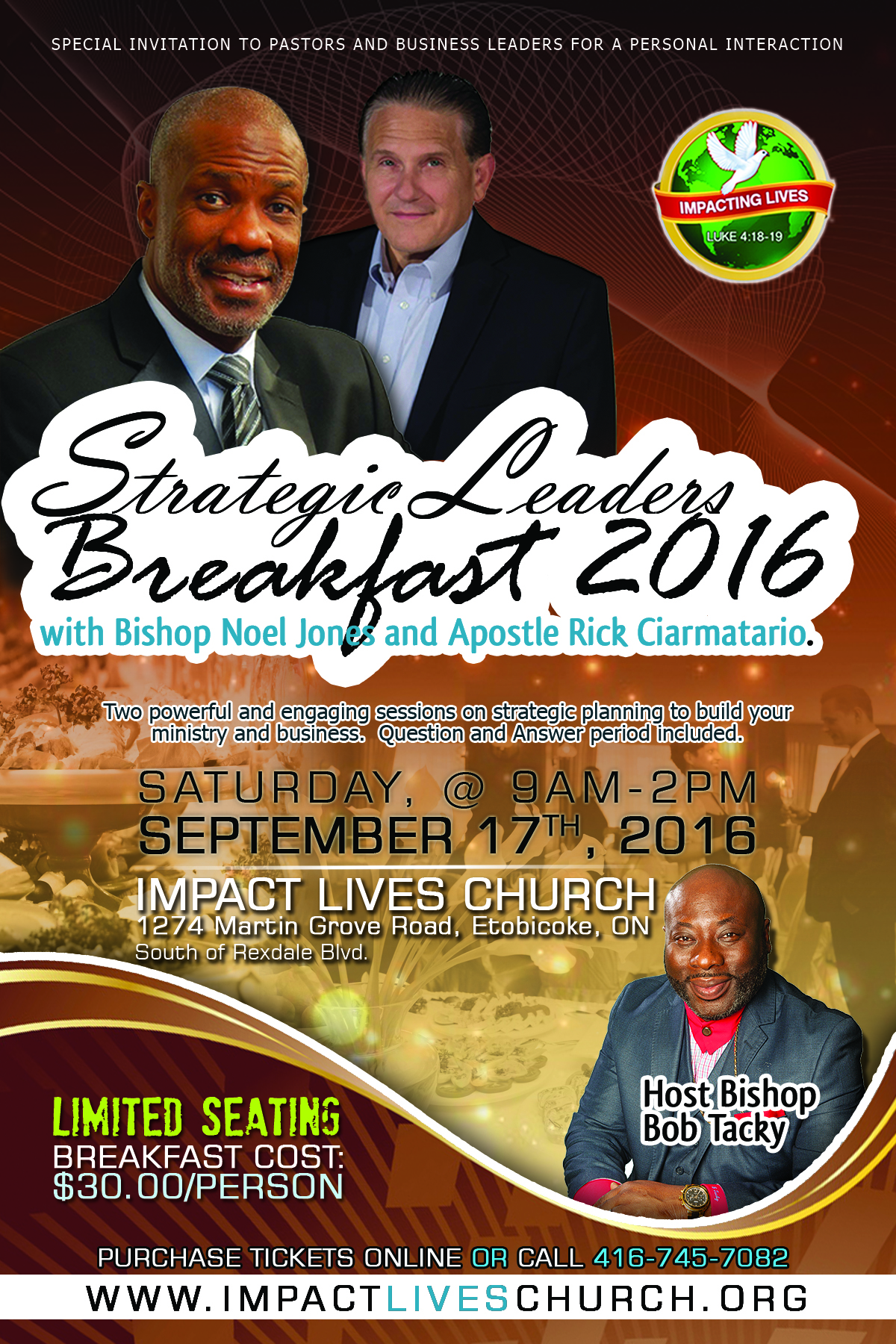 Strategic Leaders Breakfast Bishop Noel Jones and Apostle Rick Ciarmatario Sep 17, 2016 09:00 AM - Sep 18, 2016 02:00 PM
