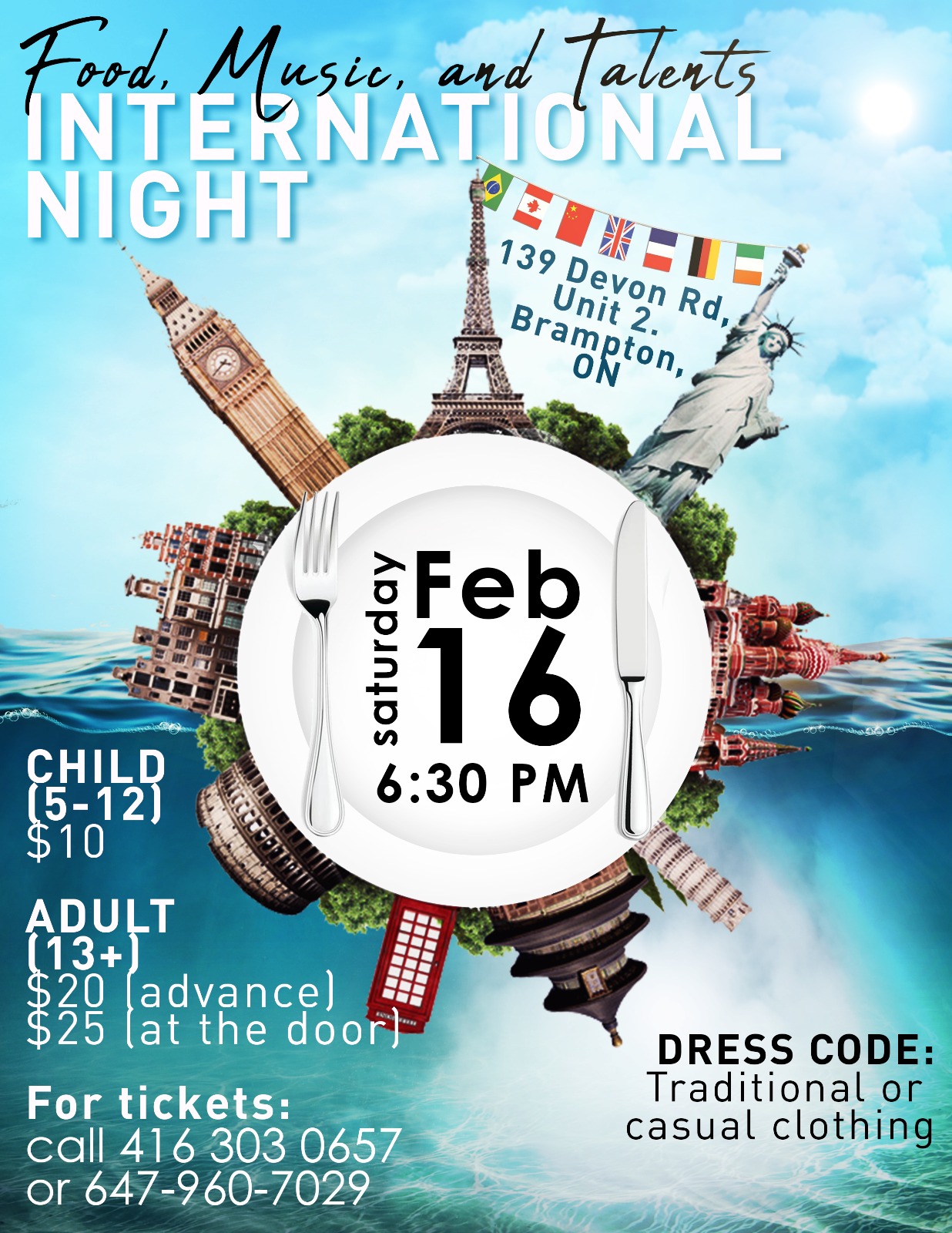A night of culture and diversity. A night to celebrate and honor ethnicity. A night to show Gods love. A night of fun and food.