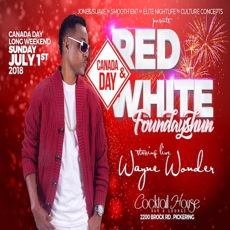 International dancehall superstar Wayne Wonder will be inside Cocktail House in Pickering, Sunday July 1. It’s a Red & White Affair and everyone is invited. All booths sold out and limited advance tickets are getting low so plan ahead and get yours now
