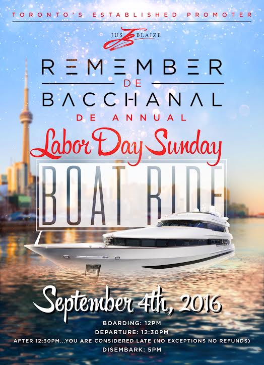 We set sail Labour Sunday! Your favourite summer boat ride notorious and legendary for "De Bacchanal On de Boat". Coined as the most hype ride on the water.