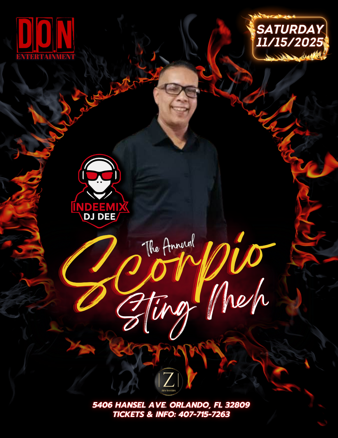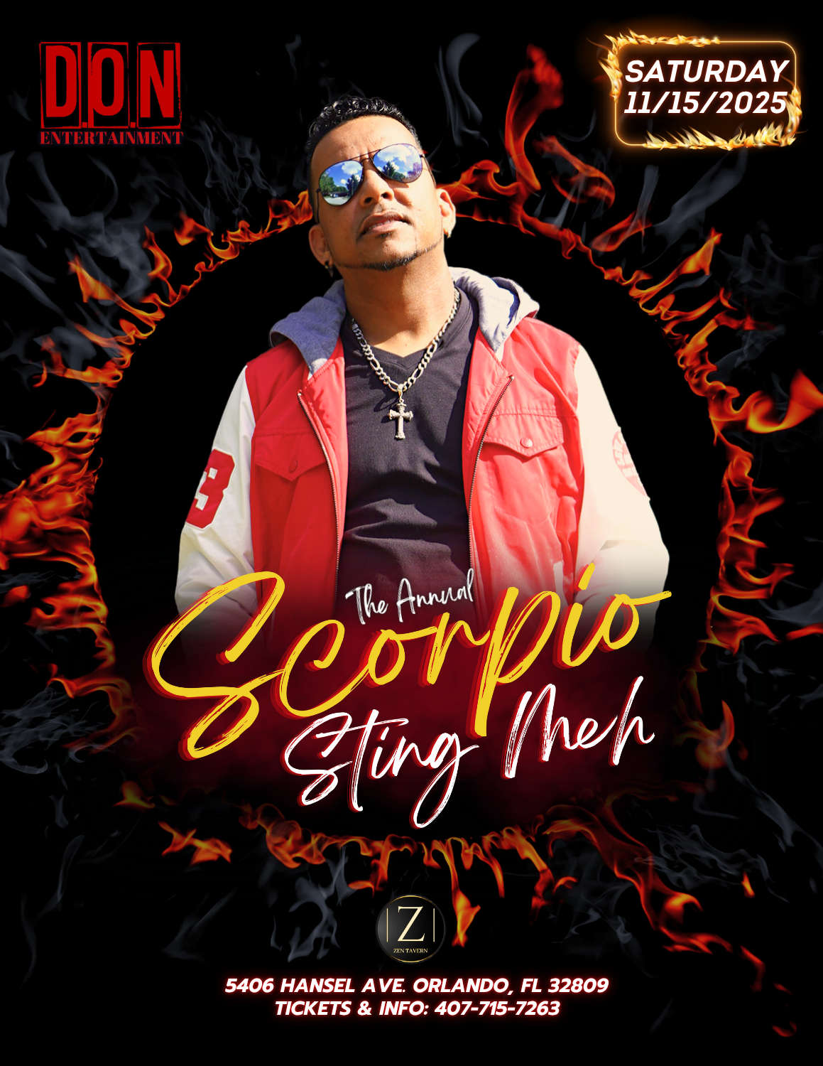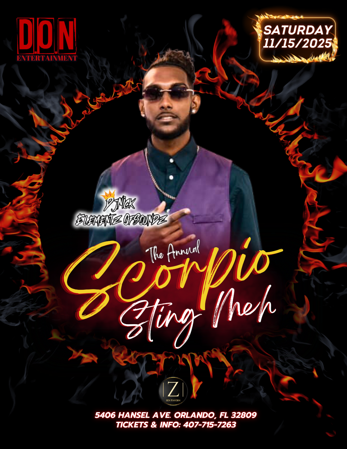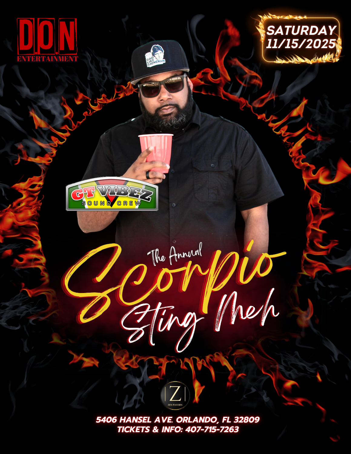 #ScorpioStingMeh #DONEntertainment #ScorpioSeason #OrlandoEvents #ZenTavern #CaribbeanVibes #LiveMusic #ScorpioParty #IslandVibes