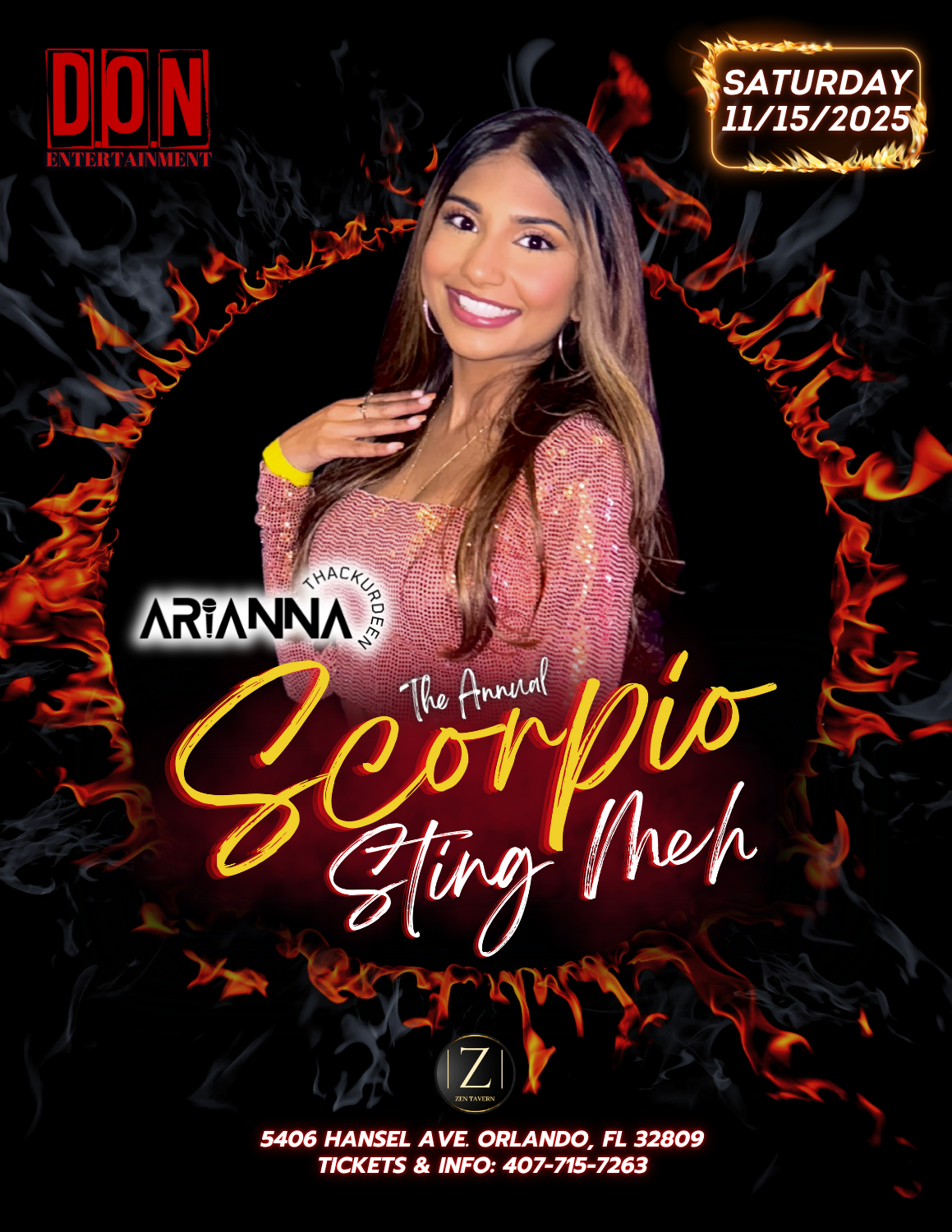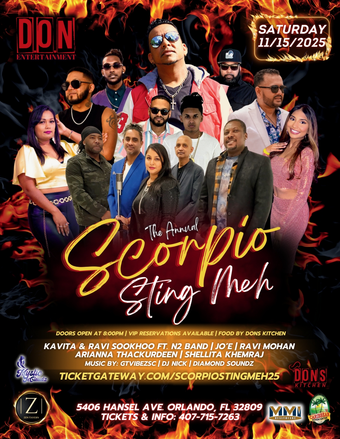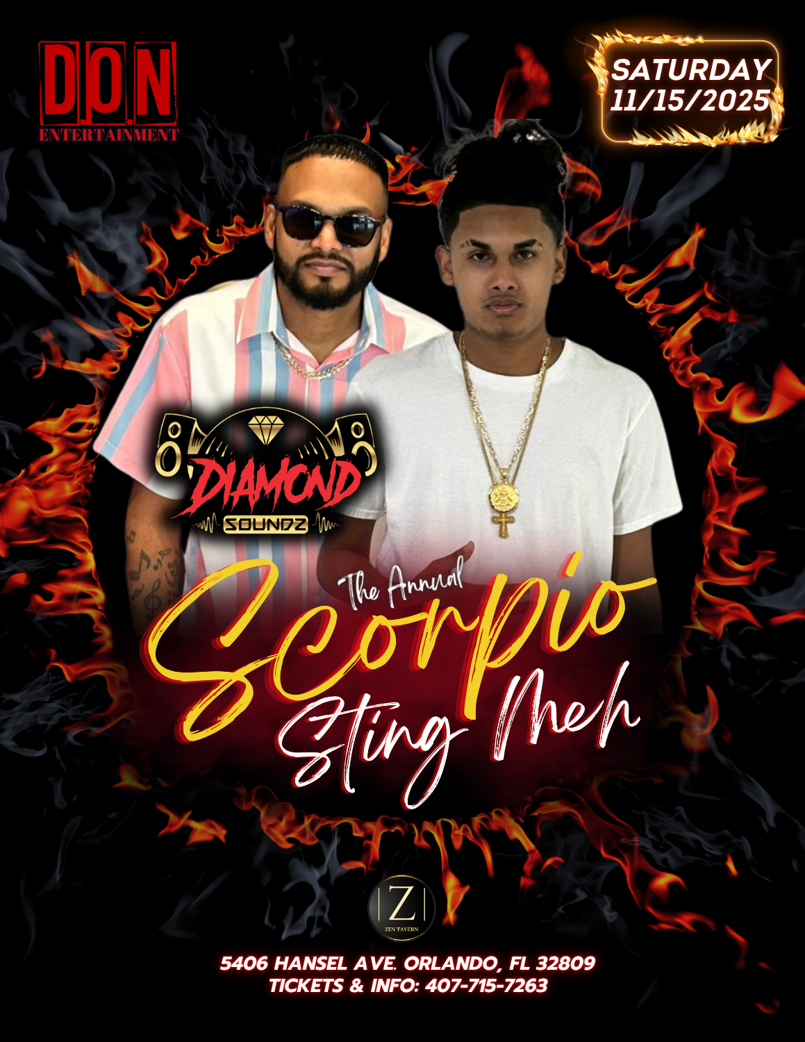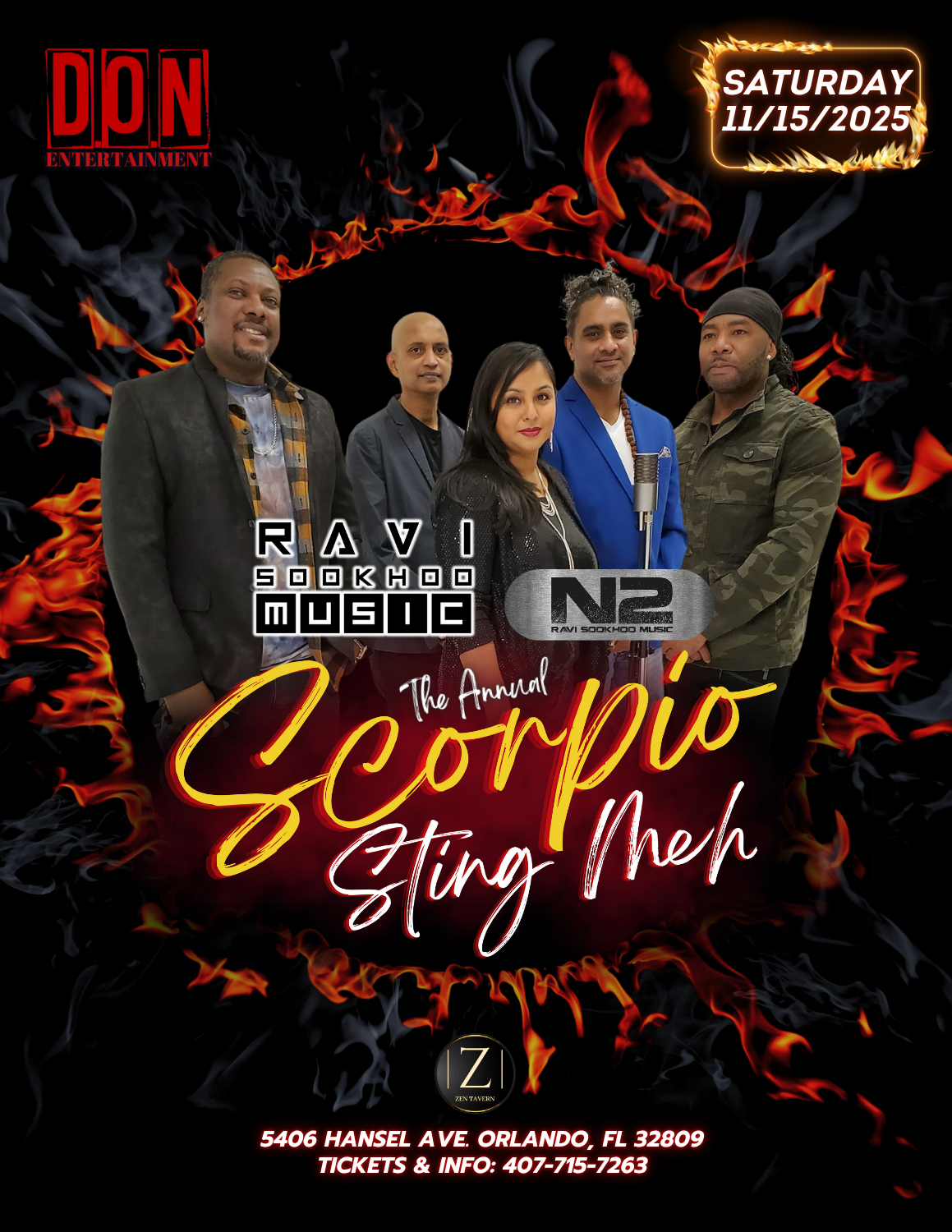 #ScorpioStingMeh #DONEntertainment #ScorpioSeason #OrlandoEvents #ZenTavern #CaribbeanVibes #LiveMusic #ScorpioParty #IslandVibes