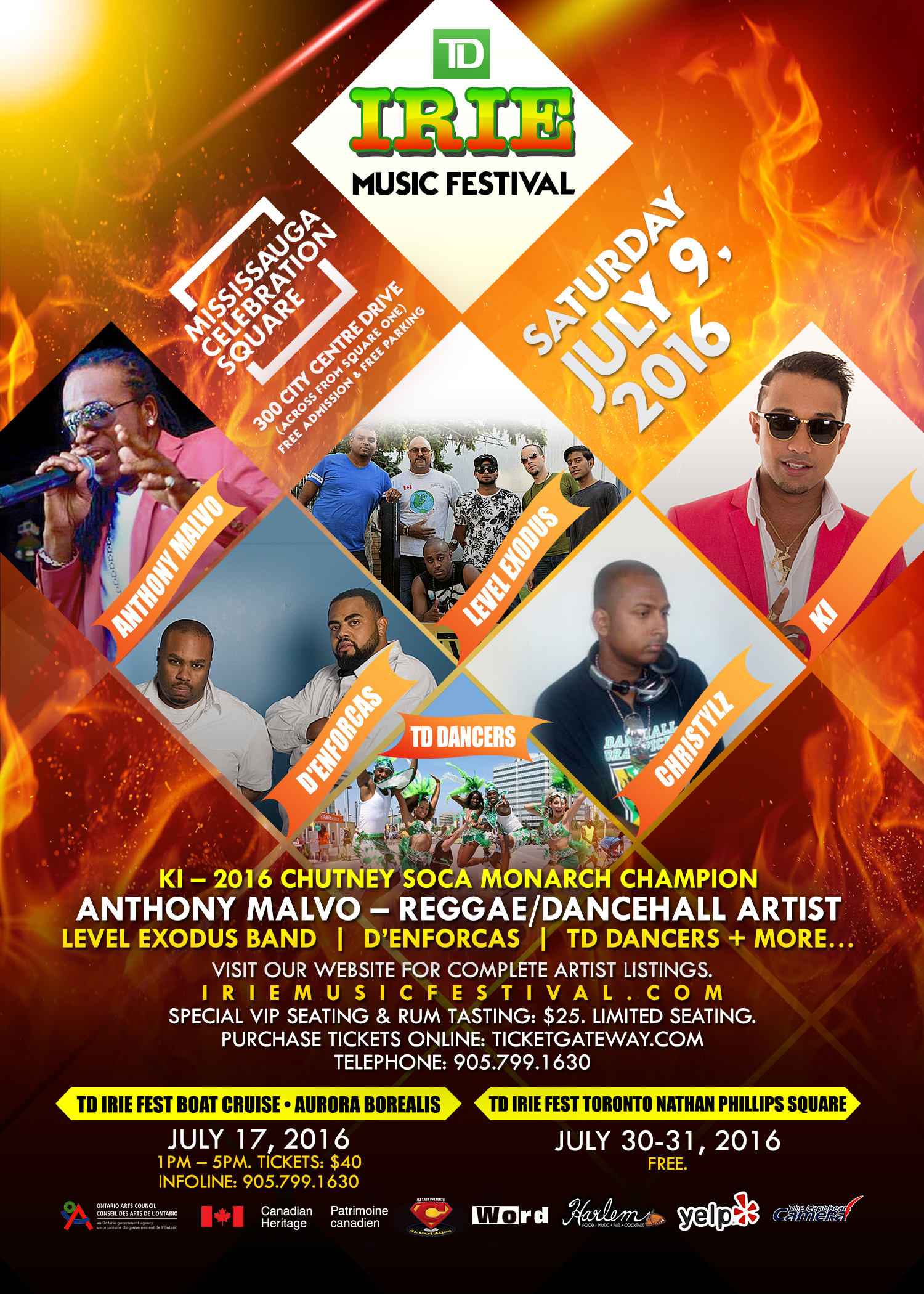 Headliners: KI, 2016 Chutney Soca Monarch Champion Anthony Malvo, International reggae veteran Level Exodus Band, D’Enforcas, TD Dancers, And more…