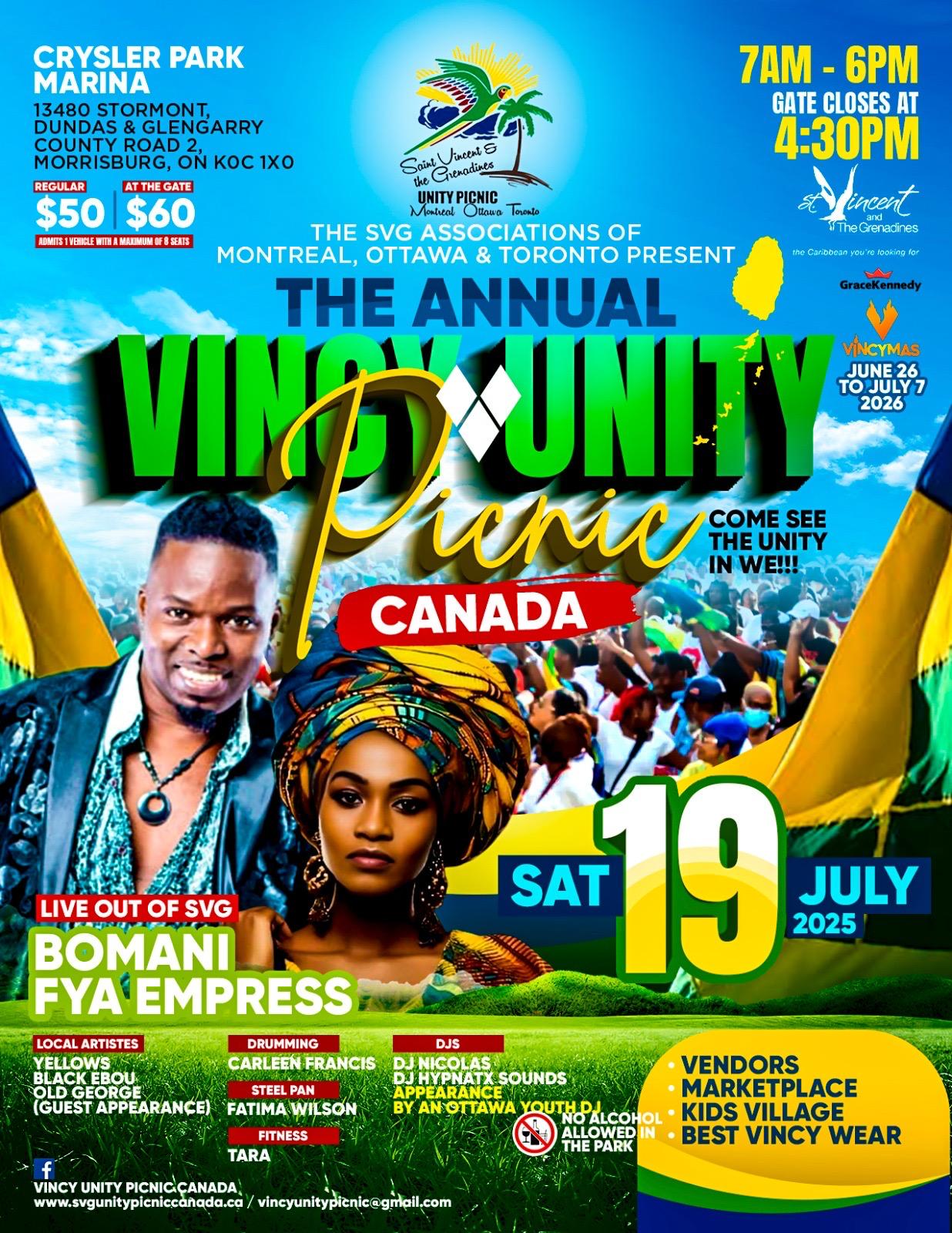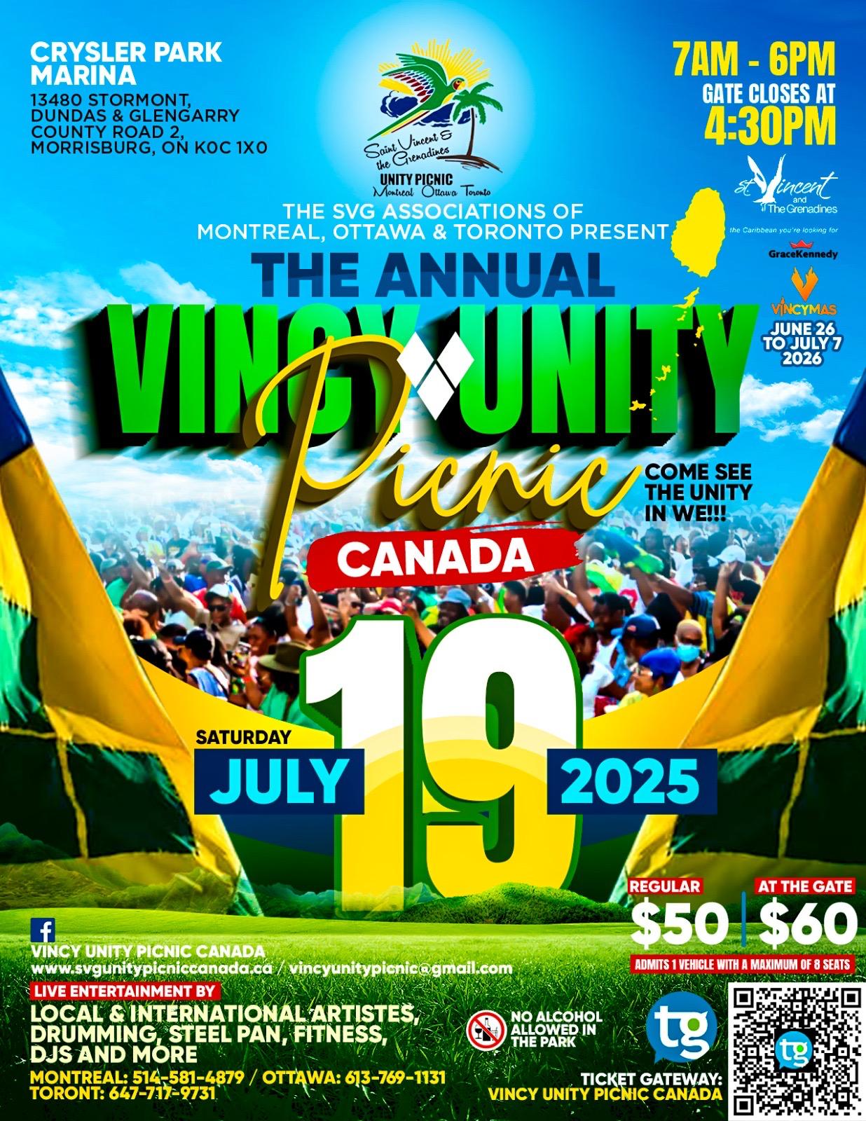 Vincy Unity Annual Picnic - 2025. Hosted by the St. Vincent and the Grenadines Associations of Montreal, Ottawa and Toronto.