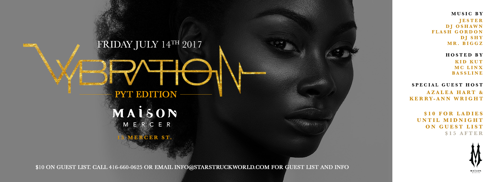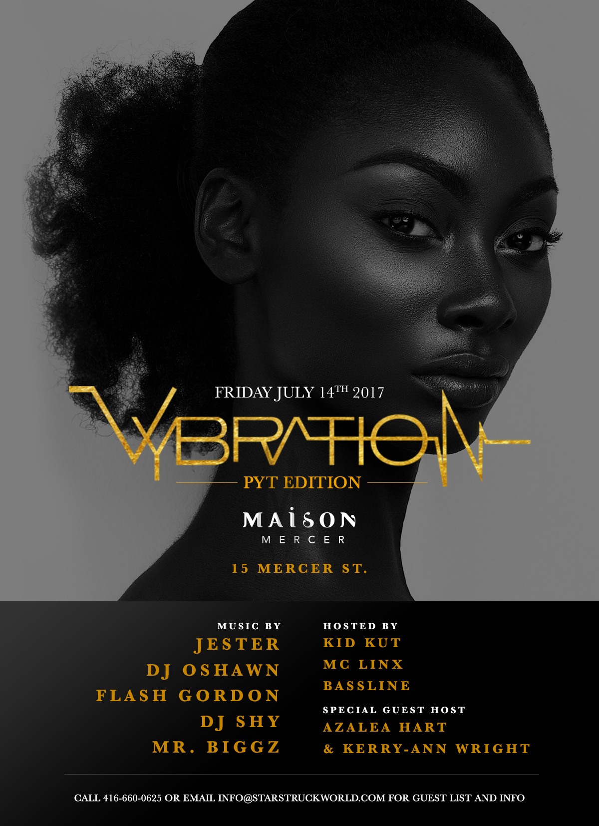 It is no big secret that the StarStruck brand is well known for having the some of the most beautiful women in the city attend our events.  Since we Launched the new flagship event VYBRATION its now just the norm.  VYBration is a lively event with a healthy mix of class and maturity the women love.  Since this new event has been built and grown by our wonderful female clientele we wanted to do a special night dedicated to the ladies.  The strong independent women that love a good party and not afraid to have a good time.  The women that are young at heart, stylish, and walk with a mature dignity.  Only fitting we dub this edition of VYBration as PYT.  It says it all in three letters. The late great Michael Jackson's timeless classic hit is the perfect theme song for our wonderful females and this night.  We are inviting all the PYT's out there to come out and enjoy yourselves at this special edition of VYBration.  We put together an all-star line up of DJ's and talent to thrill you all night in the most beautiful venue in Toronto so you  will not be disappointed.  This night is dedicated to you ladies!!!