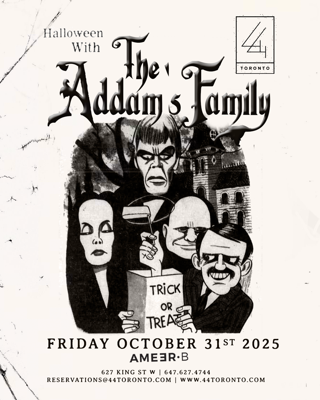 Celebrate Halloween at 44 Toronto with a night inspired by The Addams Family. Step inside a world of gothic elegance and eerie sophistication as 44 transforms into the family mansion for one unforgettable night.