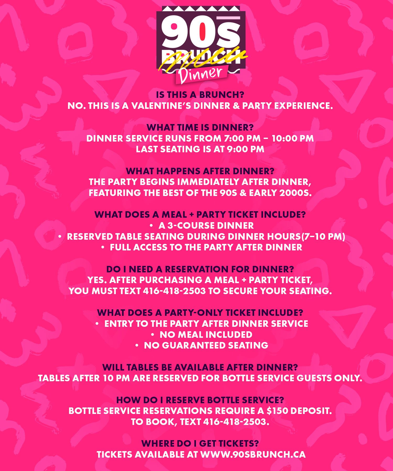 Meal ticket holders must text 416-418-2503 after purchase to secure their dinner seating reservation.