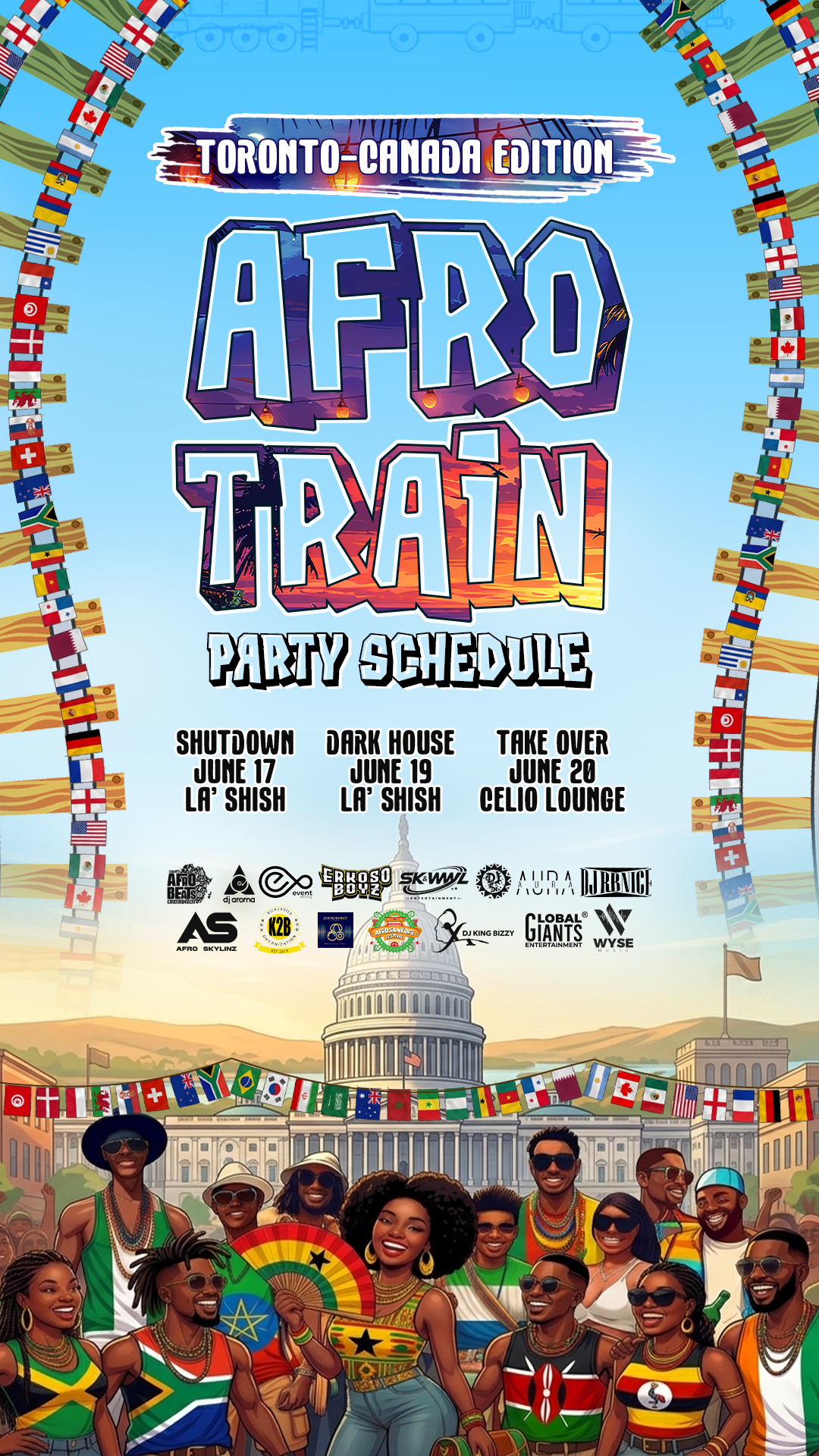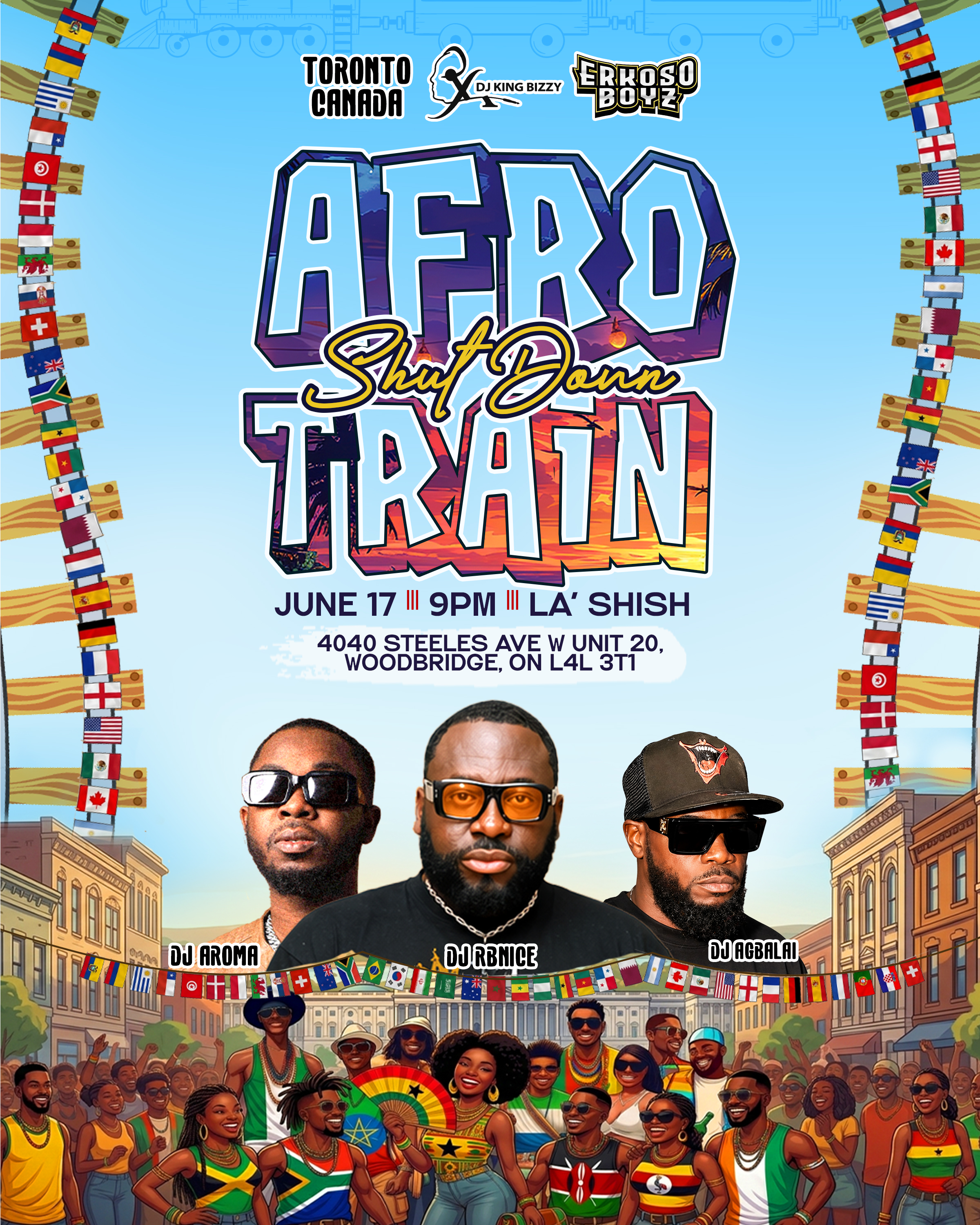 2. AfroTrain Dark House - June 19th - La’ Shish , 4040 Steeles Ave W Unit 20, Woodbridge, ON L4L 3T1. -Hosted by Erkoso Boyz, DJ kingBizzy & SK WWL