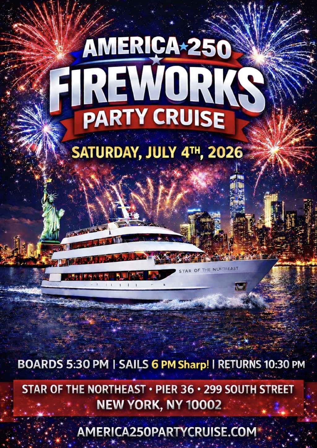 Celebrate Independence Day on the water with skyline views, a packed dance floor, complimentary buffet, and front row positioning for one of the most anticipated fireworks shows in history.