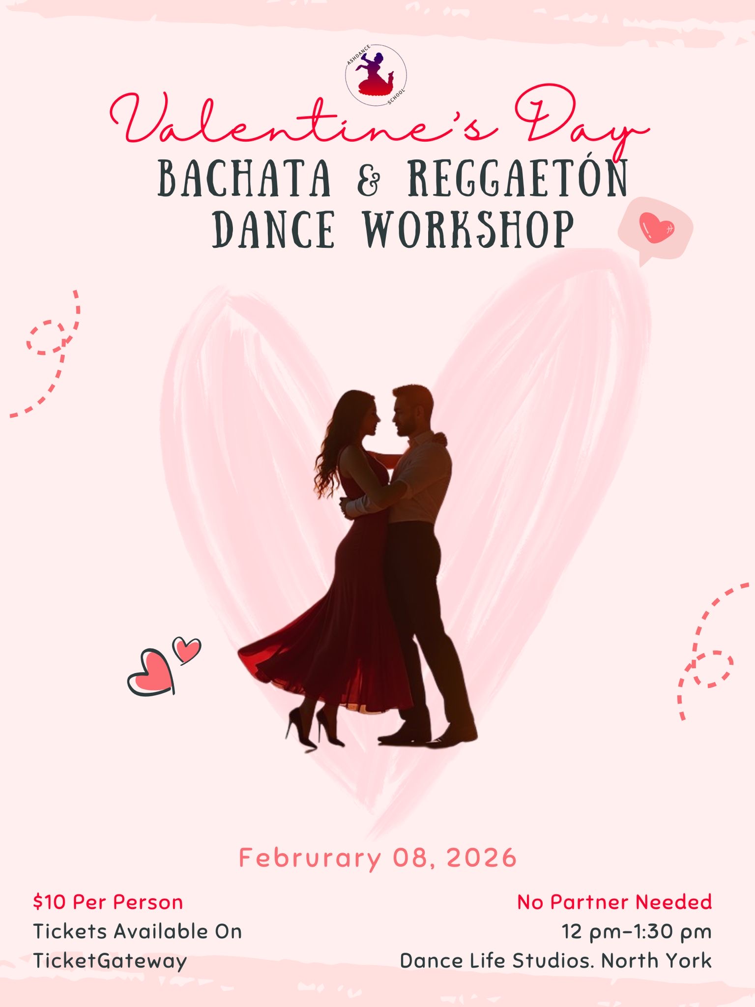 Fall in love with the rhythm this Valentine’s Day 💃🕺 Join AshDance School for a Bachata & Reggaetón Dance Workshop designed to bring connection, confidence, and fun to the dance floor.