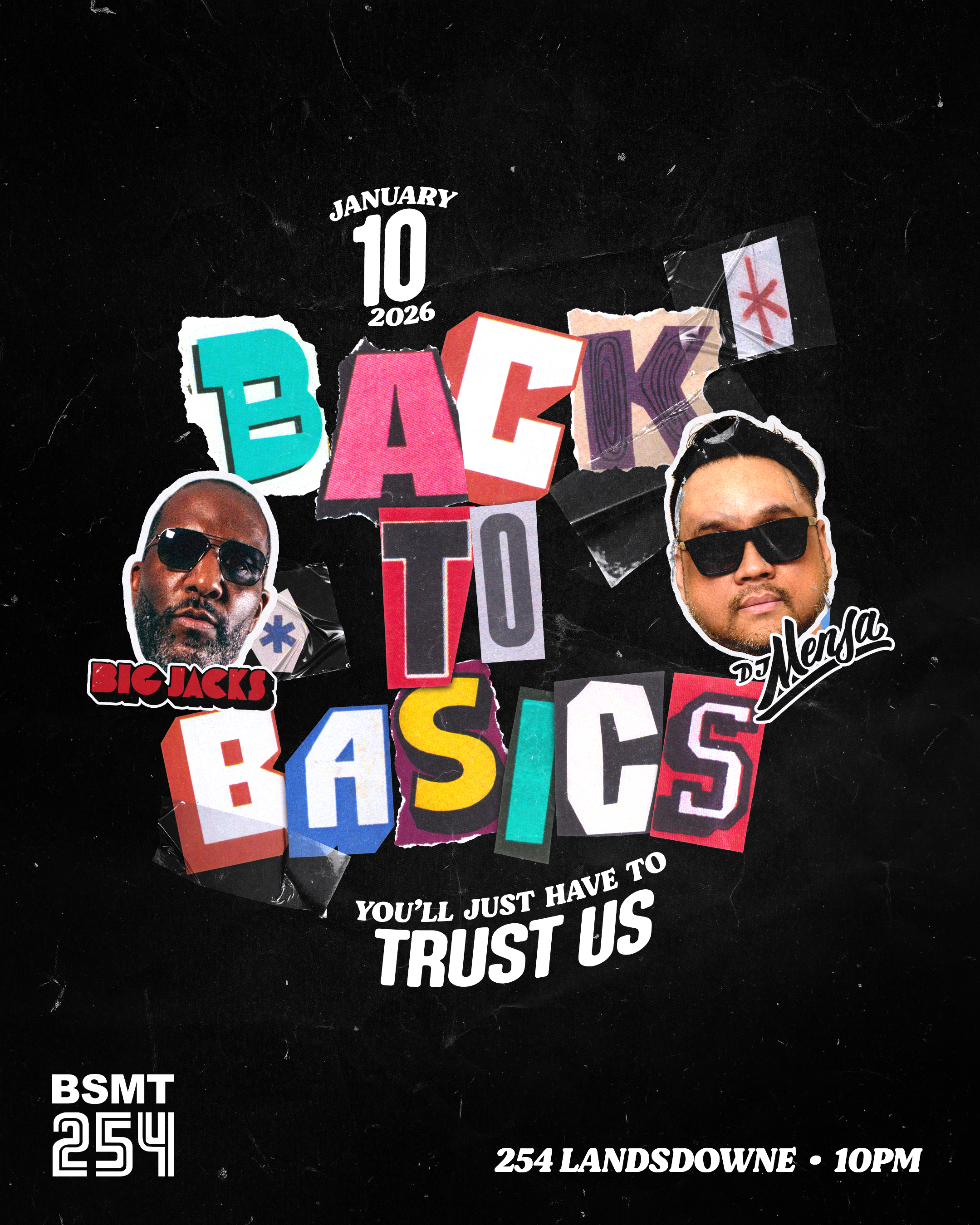 Set off your 2026 properly inside BSMT254 for Back To Basics! Your favorite selectors Big Jacks and DJ Mensa are rinsing all the big tunes in the intimate setting for your listening pleasure. Come through with an open mind!