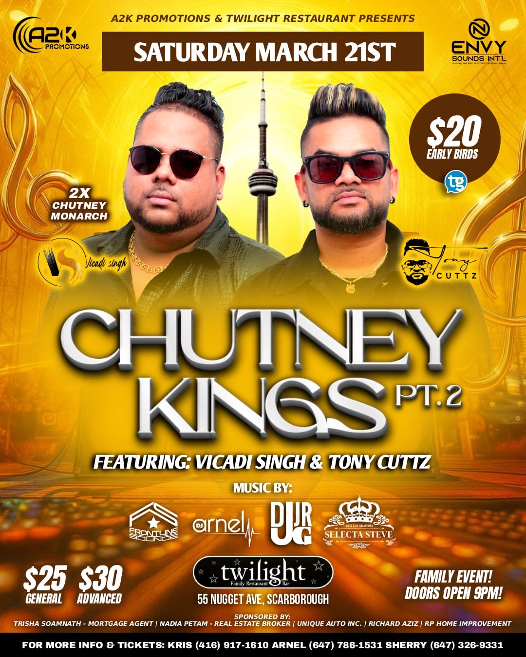 Featuring 2X Chutney Monarch, Vicadi Singh & Tony Cuttzπ€π₯