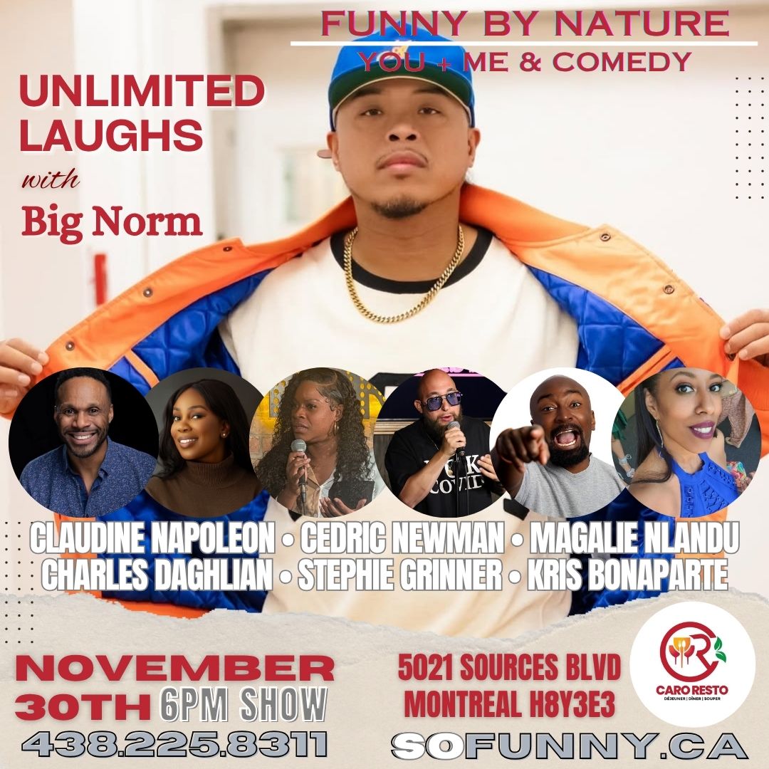 •Big Norm is in town for 1 night only. He features regularly on major platforms such as Kevin Hart's LOL Network, multiple Just for Laughs Festivals, CTV's Roast Battle Canada and many more.