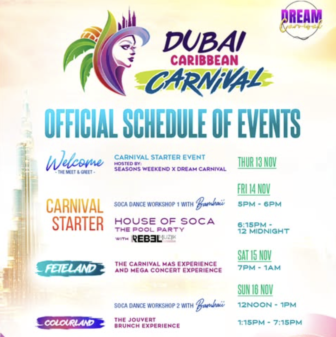 🎶 Dance to the hottest soca beats, enjoy spectacular live performances, and immerse yourself in the magic of Carnival under the Dubai skyline.