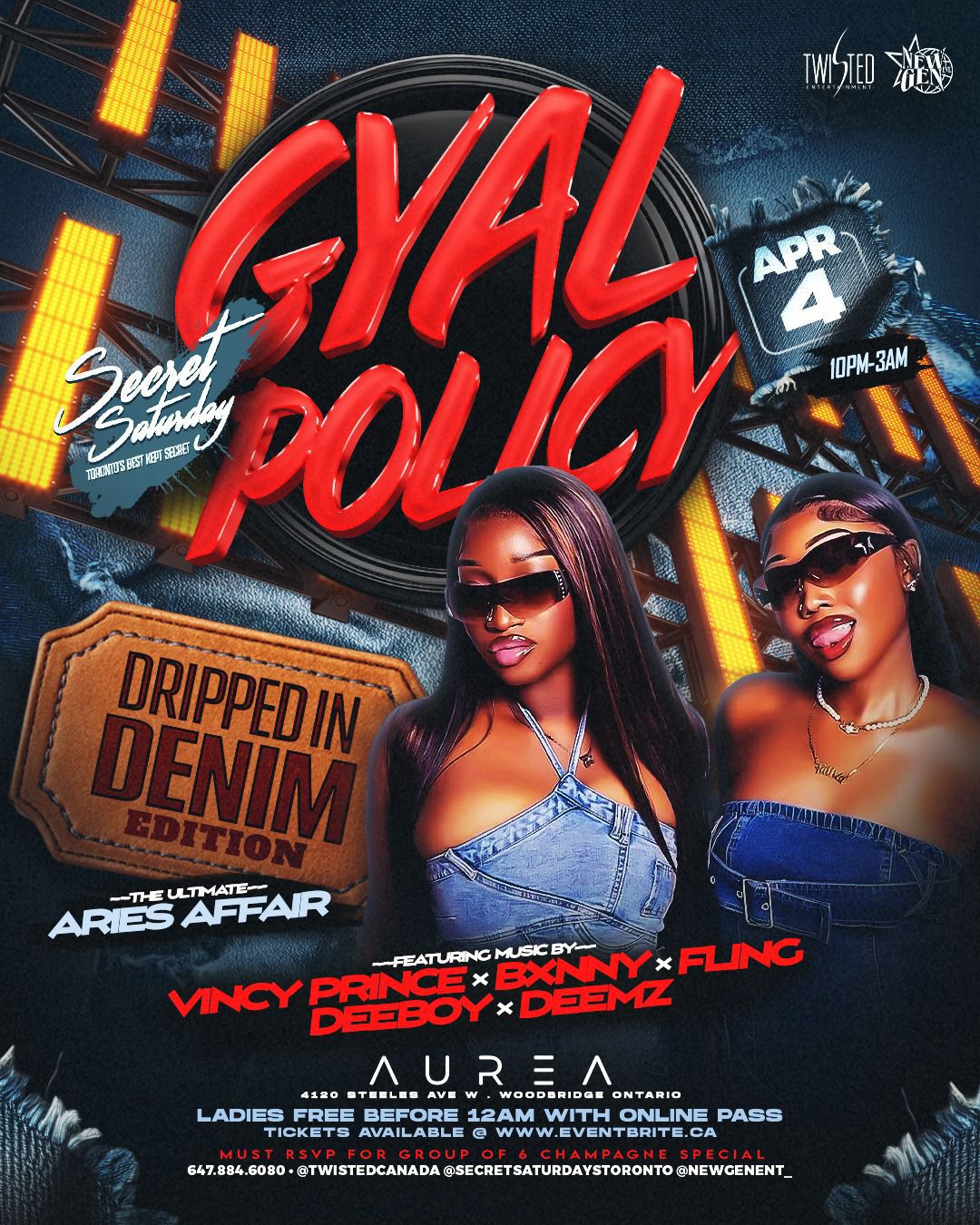 Get ready our annual 'Gyal Policy: Dripped In Denim' sould out event, where denim is the dress code and vibes cant done! This in-person event is all about celebrating the fiery Aries energy for there birthday SZN ,