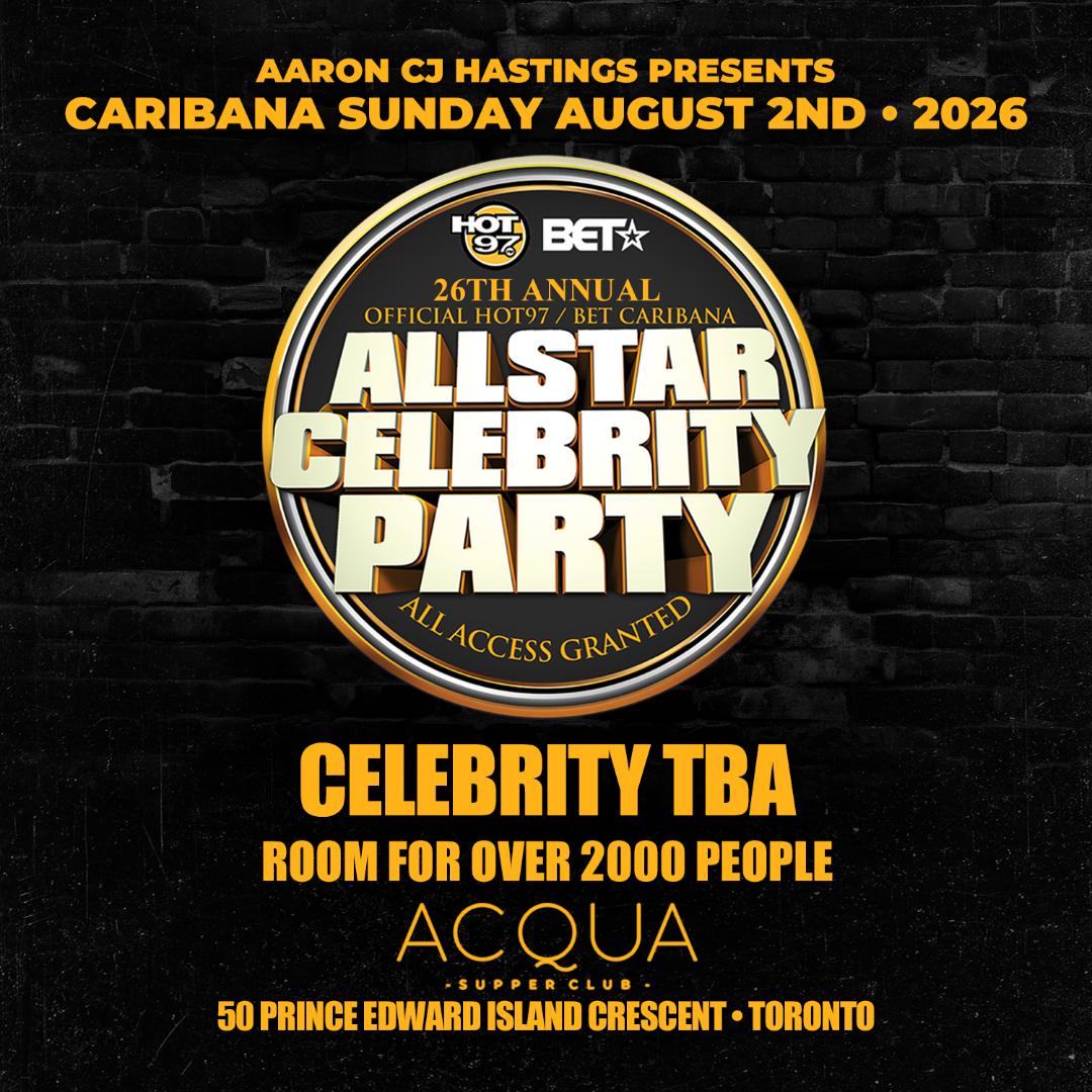 Caribana Sunday Hot 97 / Bet All Star Party is being held at Toronto's ACQUA Entertianment Complex with room for over 2000 People Downtowon Toronto. Last Year OVO's Own Roy Woods x Smiley Plus Reggae Star Kraff Were In attendance Join us in 2026