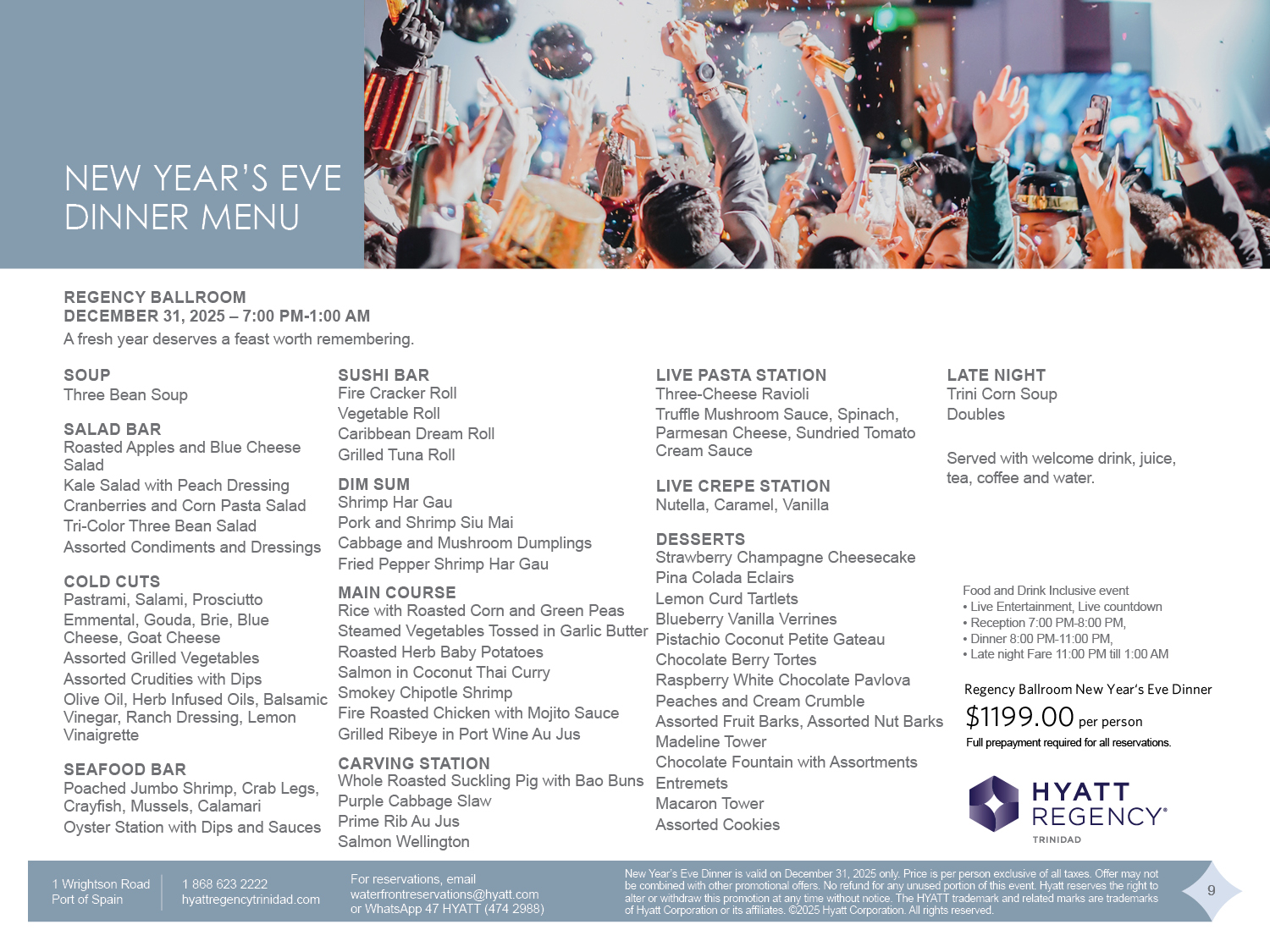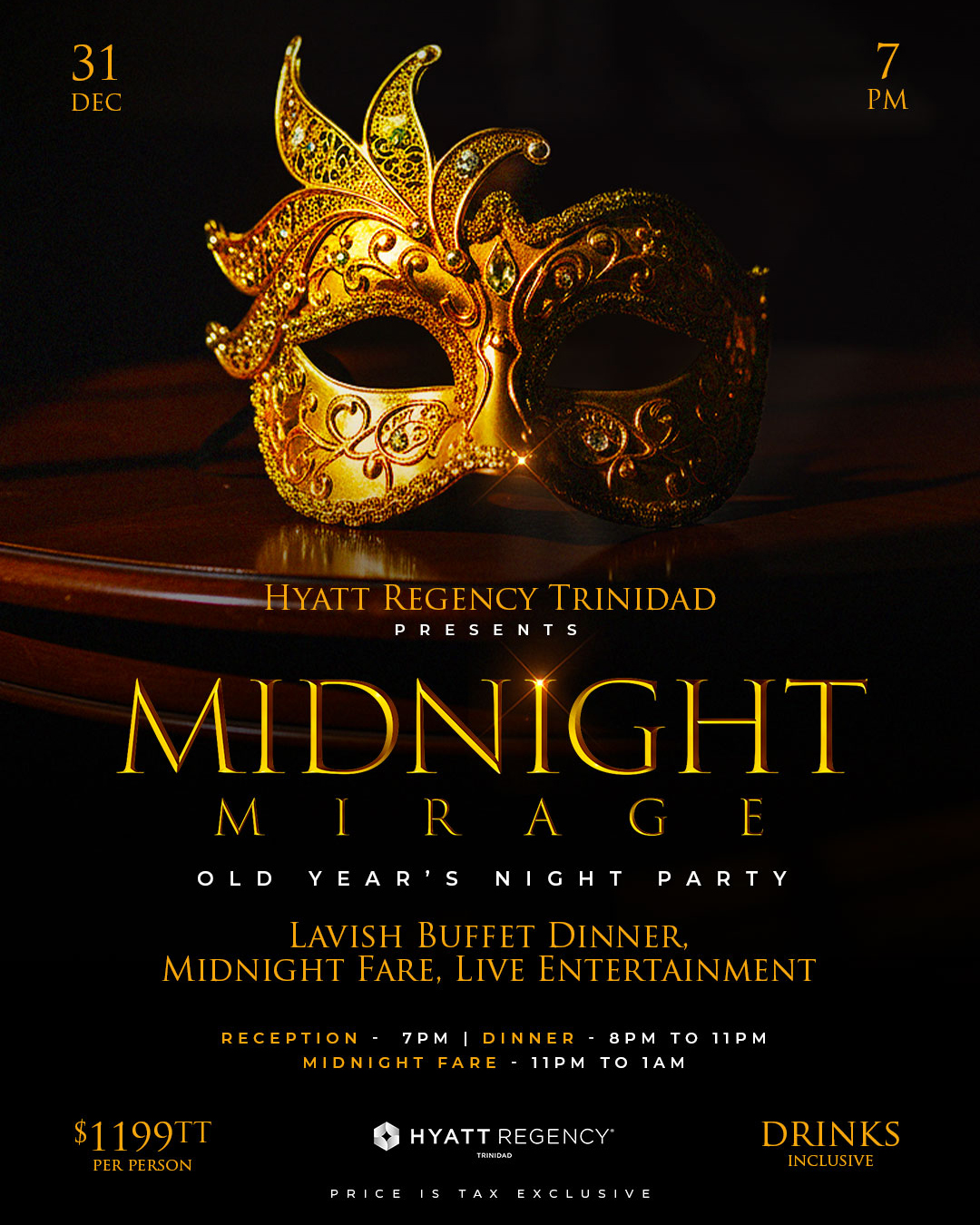 Ring in 2026 in style at Hyatt Regency Trinidad's New Year’s Eve Dinner and Ball: "Masquerade: Midnight Mirage" - a night of glamour, exquisite flavors, and unforgettable celebration. ✨