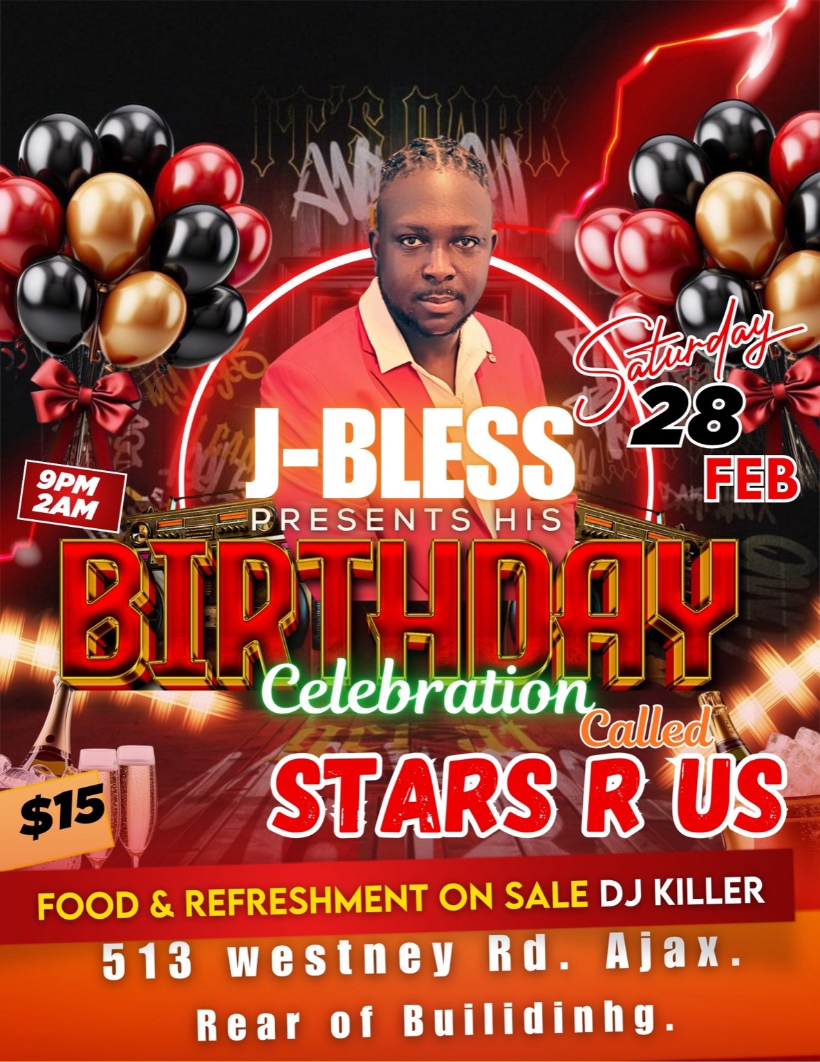 J-Bless is shutting down the night with a massive birthday celebration you don’t want to miss! Stars R Us is all about pure energy, good vibes, and a party experience like no other.