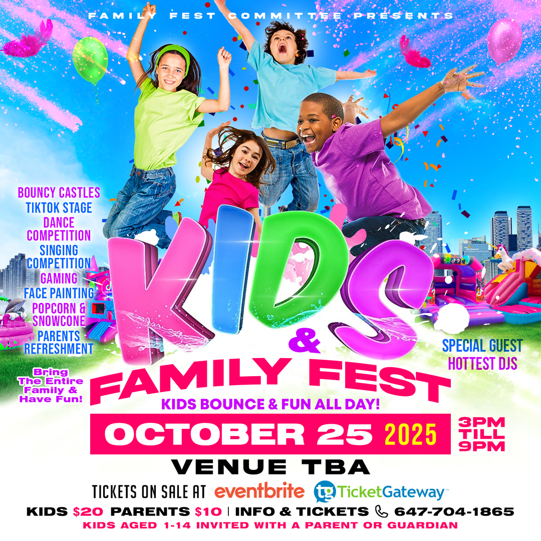 Kids Fest -Halloween Edition Saturday October 25 2025 . A Day were kids can be kids and have fun on all the bouncy castles and rides and play all the games. All the fun and sweet snacks they have to give. This will be a fun day for all the kids in the GTA to have a fun day.