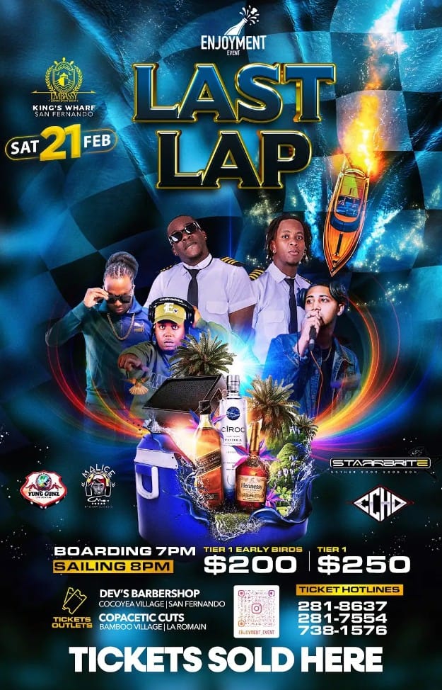 We Outside for a last lap after carnival come join us for one last sail for the season.where the road meets the sea.Free shots of tequila! Coolers welcomed. Boarding the EMBASSY LUXURY EVENT YACHT at 7:00pm to 11:00pm a night to remember for more information contact (1868)281-7554