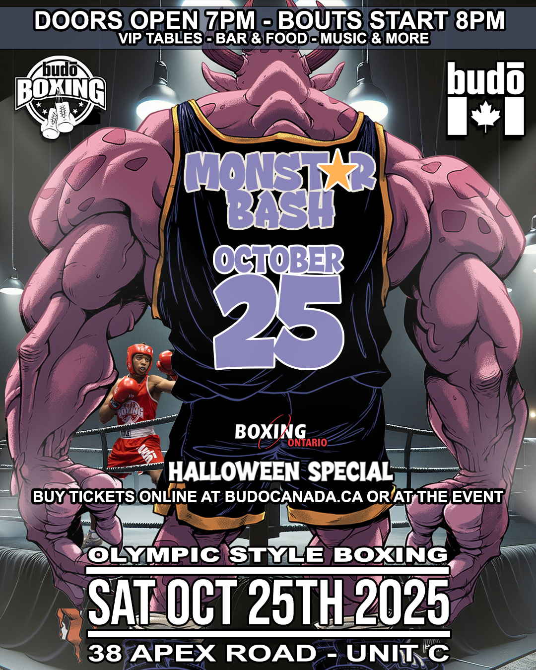 Join us for 14+ exciting amateur boxing bouts at Budo Canada, sanctioned by Boxing Ontario.