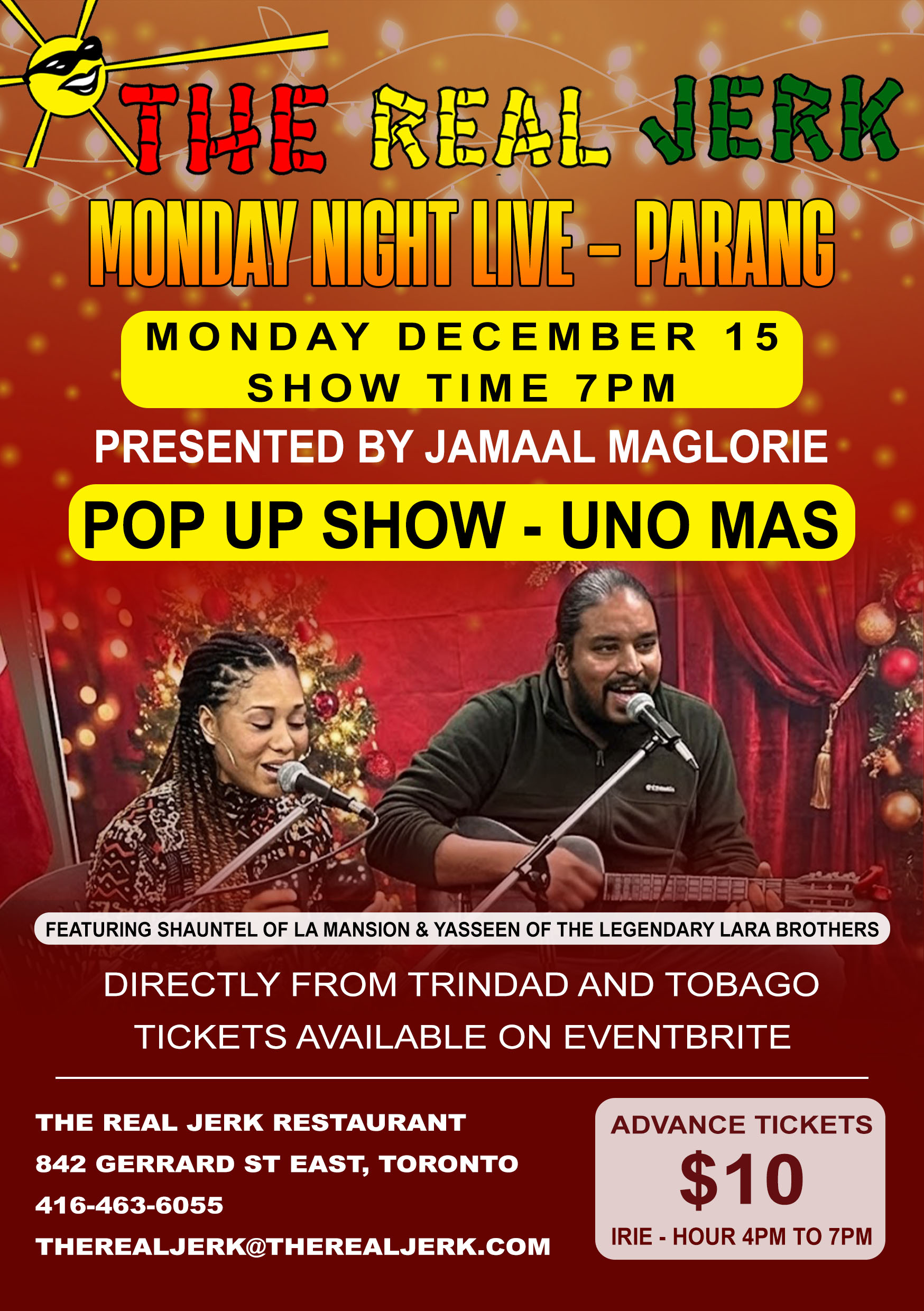 Presented by TORONTO’S OWN JAMAAL MAGLOIRE, celebrating the warm spirit of Trinidad & Tobago Christmas right here at The Real Jerk! πΆβ¨