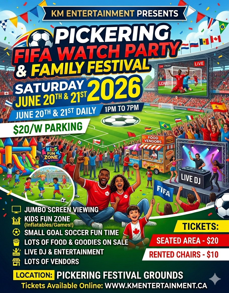 Get ready for the **Pickering FIFA Watch Party & Family Festival** 🏆🎉