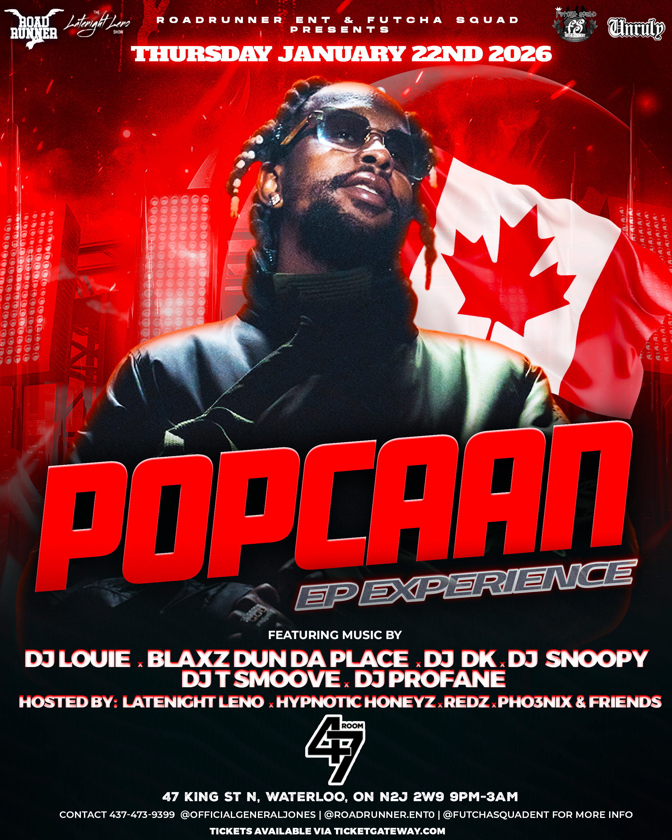 Join us Thursday January 22nd 2026 for an up close and intimate experience with international superstar Unruly/OVO dancehall artist Popcaan, while he showcases his brand new album “Nothing Without God” alongside some of his closest fans. Be one of the lucky enough to share the experience this Friday with Popcaan inside @Room47