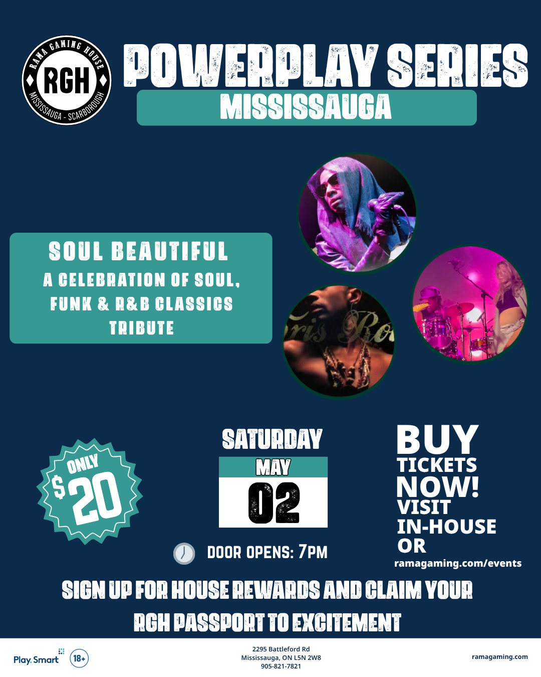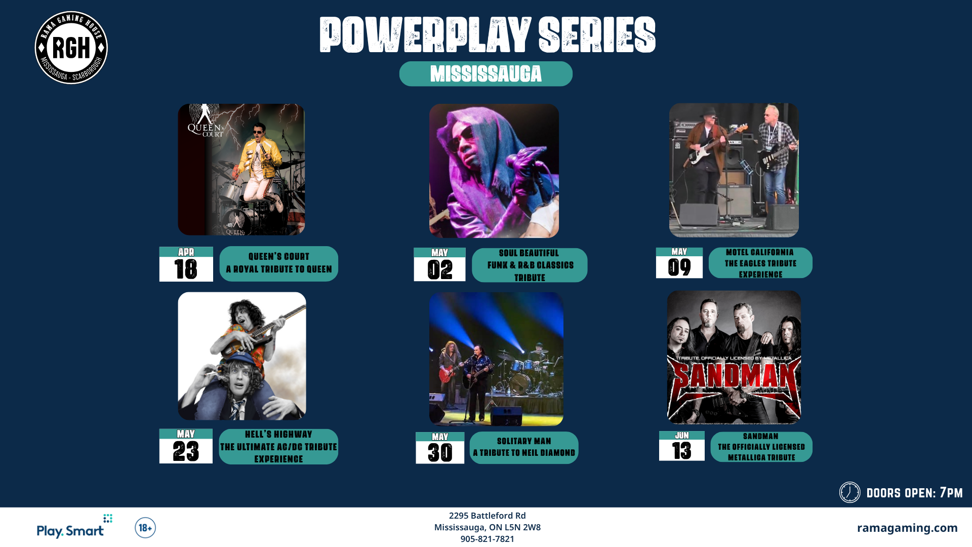 Get ready for an electrifying lineup of live tribute concerts at Rama Gaming House Mississauga. The RGH PowerPlay Series brings legendary rock, soul, funk, and metal to the stage with some of the most authentic tribute bands in Canada.