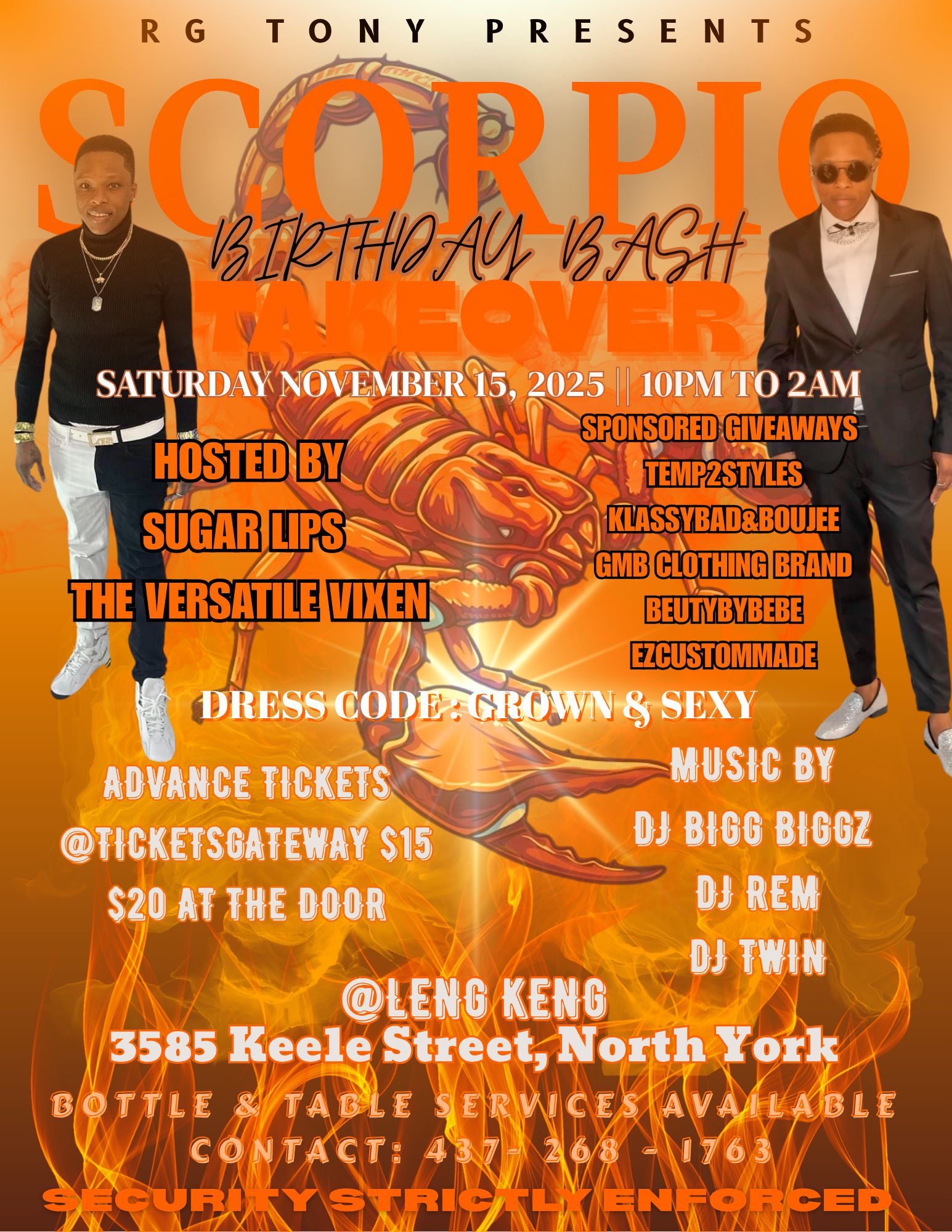 We are celebrating all the Scorpios ♏️ come out and enjoy a grown and sexy vibe, with good music and a lot of giveaways. A big gift to the best dress! Come have some fun.