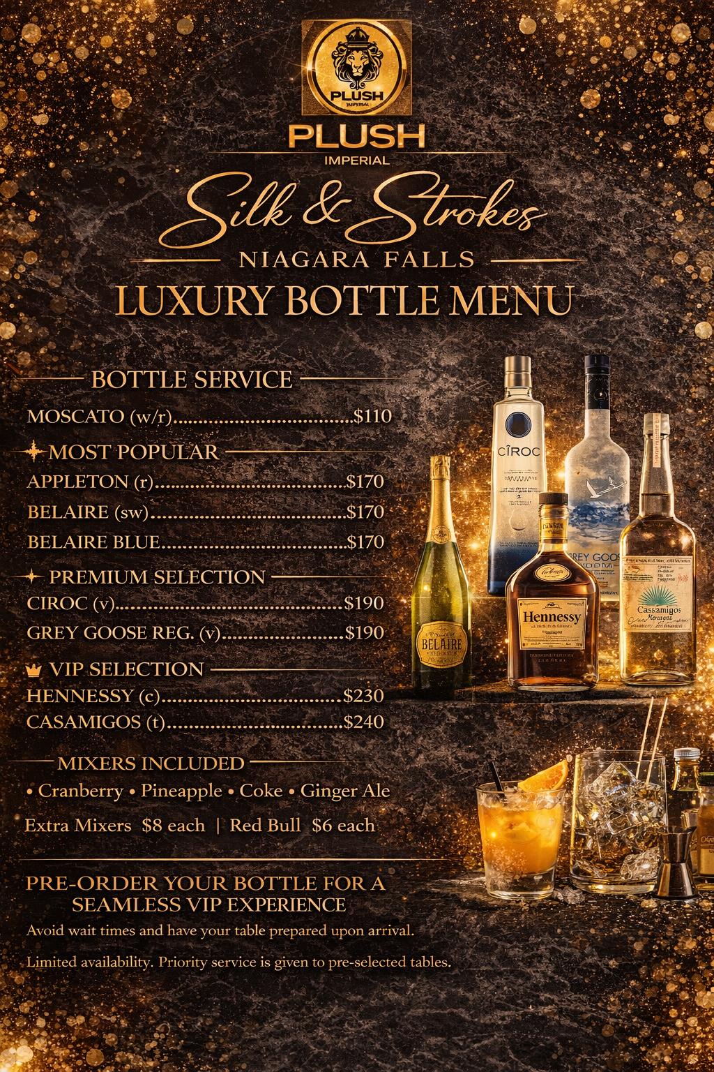 Once we reach Niagara Falls, you’ll enter an exclusive atmosphere at Plush Imperial, where creativity meets nightlife in a bold, upscale setting.