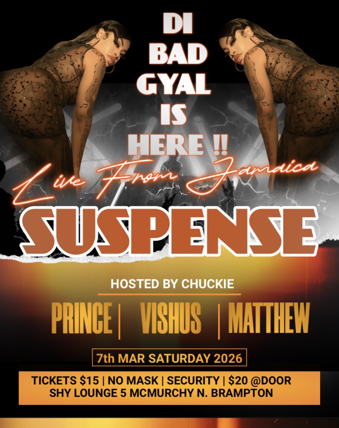 SHY LOUNGE HOSTING SUSPENSE LIVE OUT OF JAMAICA.