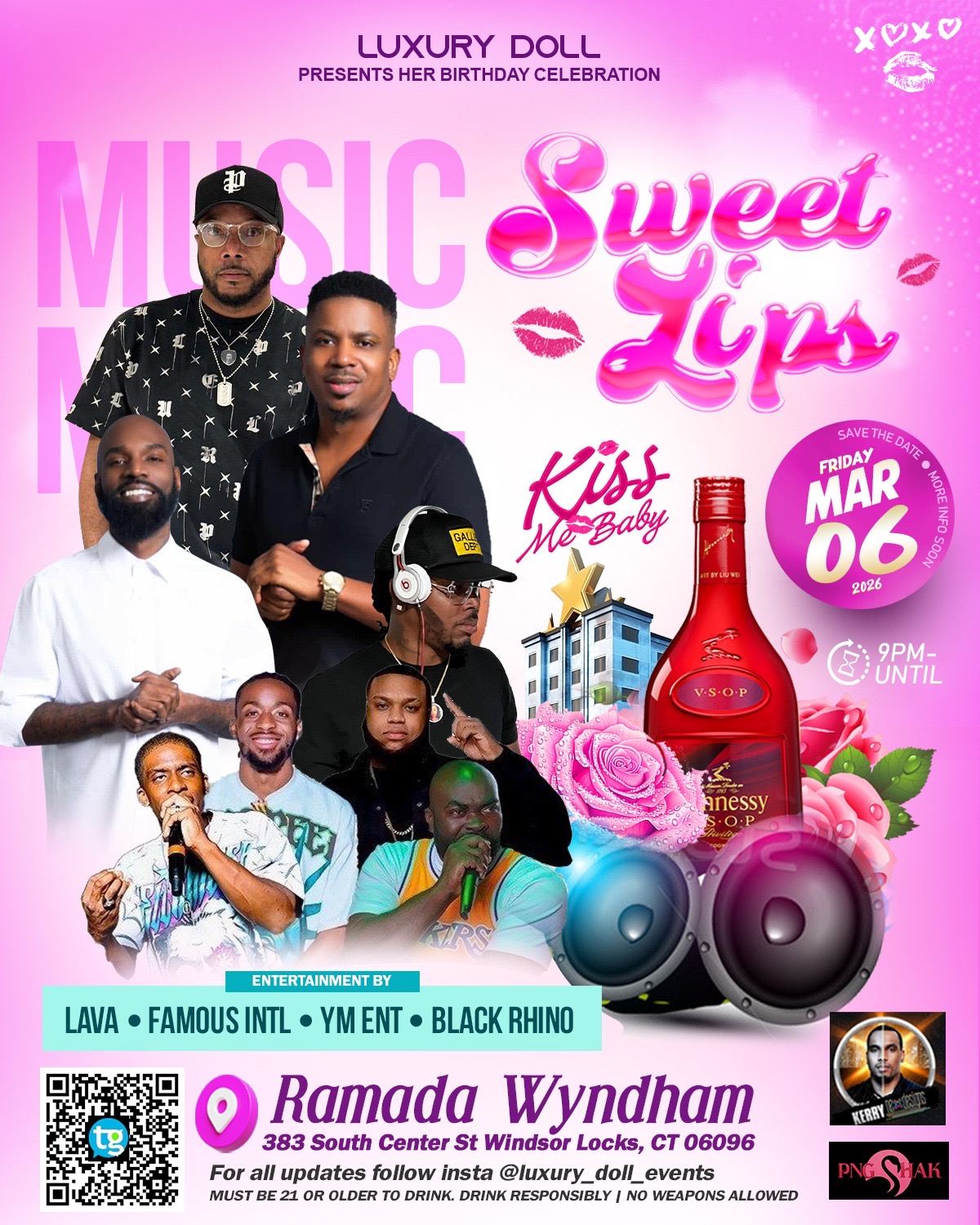 Sweet Lips is a grown & sexy adults-only birthday celebration featuring elevated vibes, and great music. Expect a stylish crowd, smooth energy, and a night designed for confidence, glam, and unforgettable moments. Dress to impress and come ready for Sweet Lips 💋