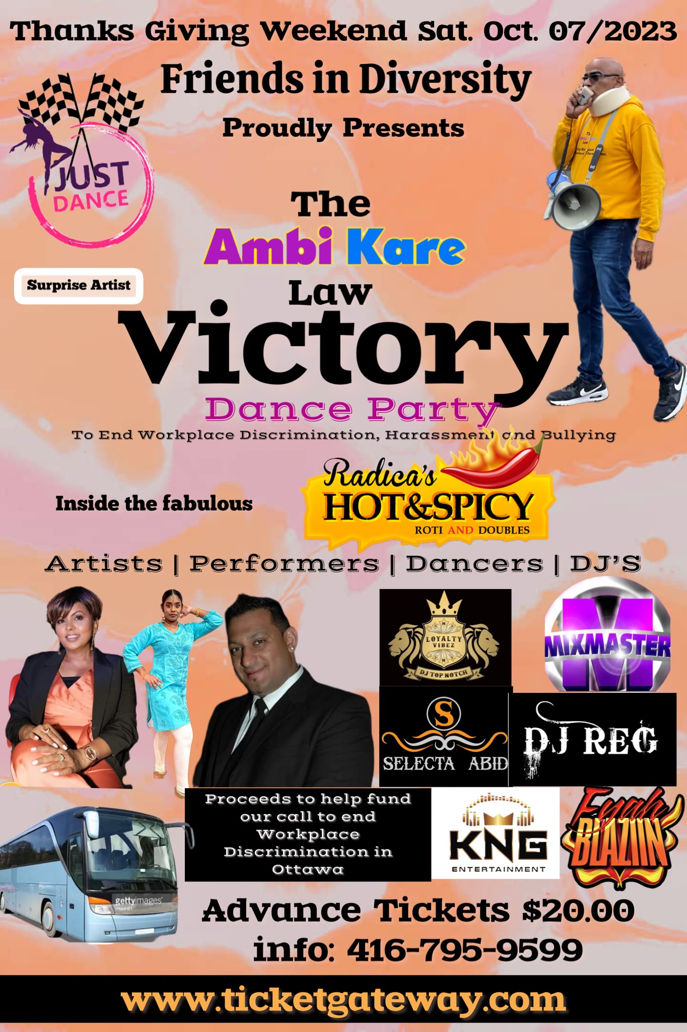 The proceeds from this event will help fund a trip to Ottawa by “The Ambikare Law” team to gain support for the Ambikare Law that will End Discrimination, Harassment and Bullying in the workplace.
