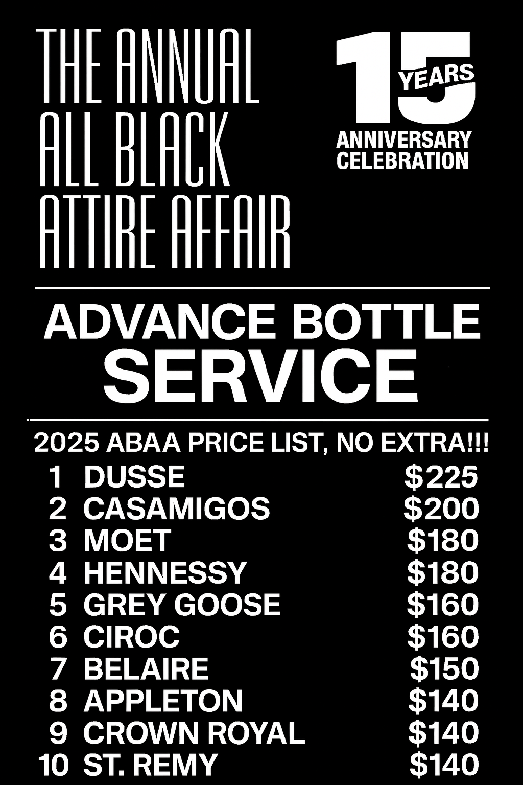 What's Included: 5 Tickets + Booth + 1 non-premium bottle (Appleton, Crown Royal, St.Remy) chasers etc. VIP ENTRANCE
