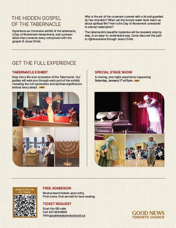 Step into God’s story through Tabernacle Encounter—a powerful one-day exhibition and live theatrical presentation that brings the ancient tabernacle to life.