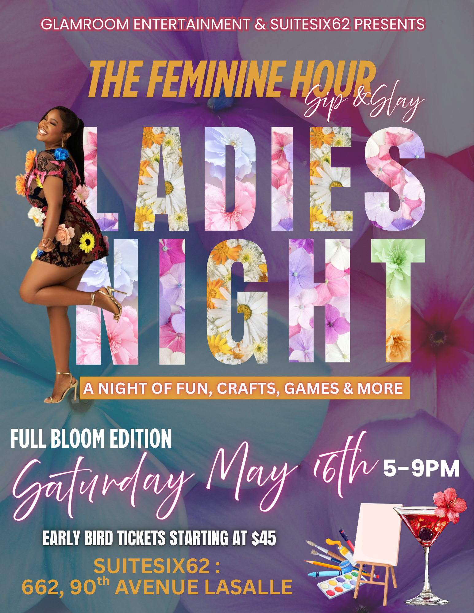 #TheFeminineHour #SipAndSlay #LadiesNight #FeminineEnergy #GlamroomEnt #ticketgateway