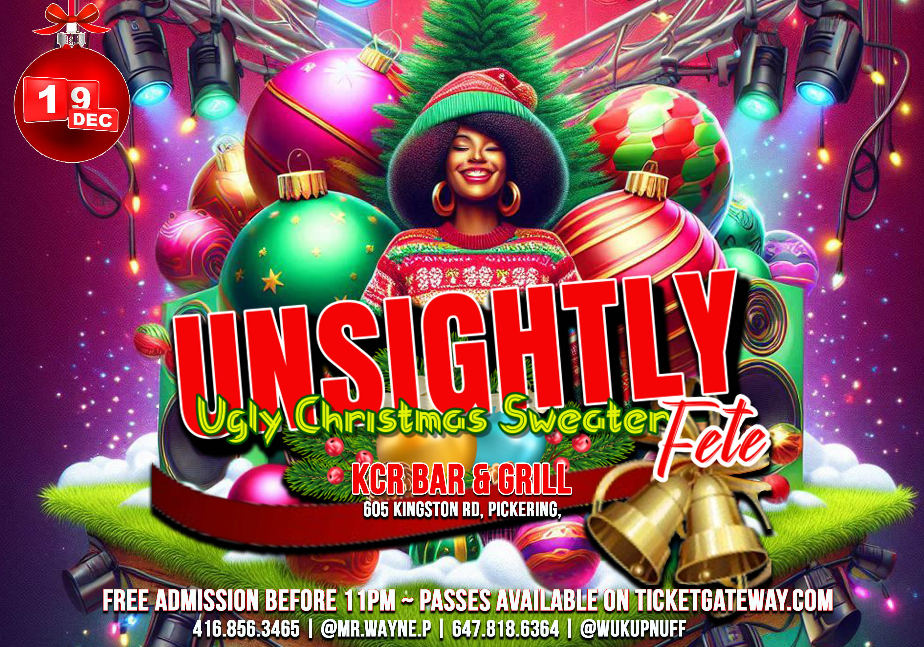 #Unsightly #UglySweaterParty #HolidayVibes #Wukupnuff #TorontoEvents #CaribbeanVibes #FeteLife #WeOutside #TorontoNightlife #IslandVibes #Soca #Reggae #RnB #PartyTime #KCRLounge #ChristmasTurnUp #UglyNeverFeltSoGood #TisTheSeasonToWukup #ticketgateway