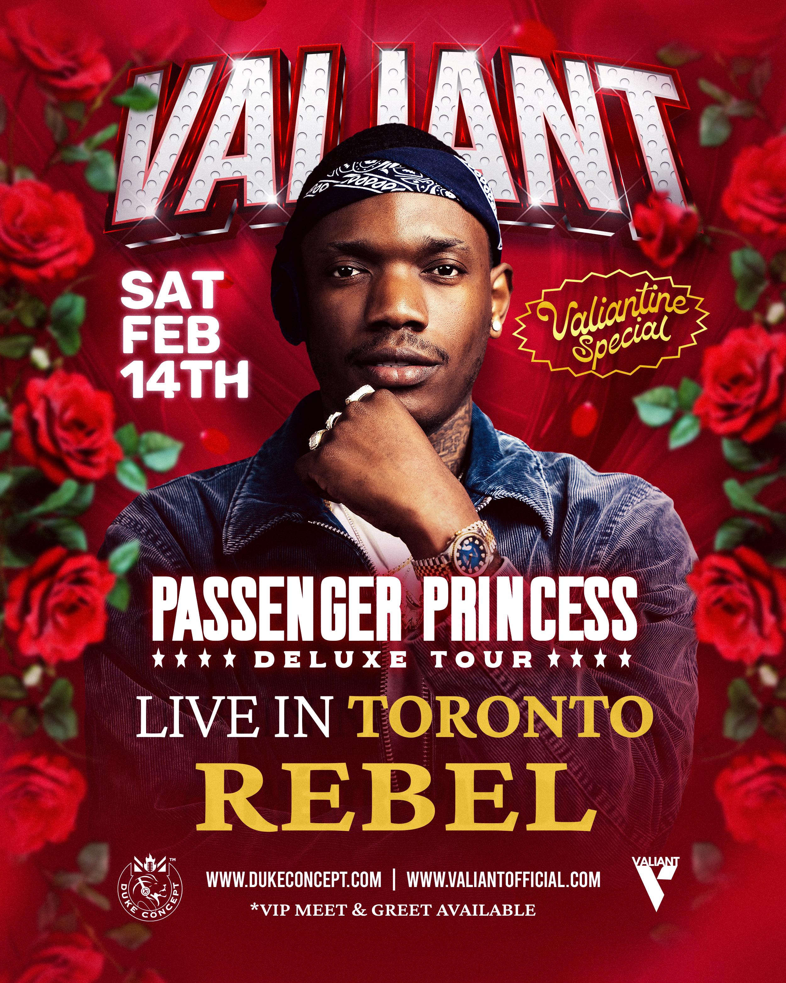 This Valentine’s Day, VALIANT brings the Passenger Princess Deluxe Tour to Toronto for an unforgettable night of passion, energy, and pure dancehall vibes.