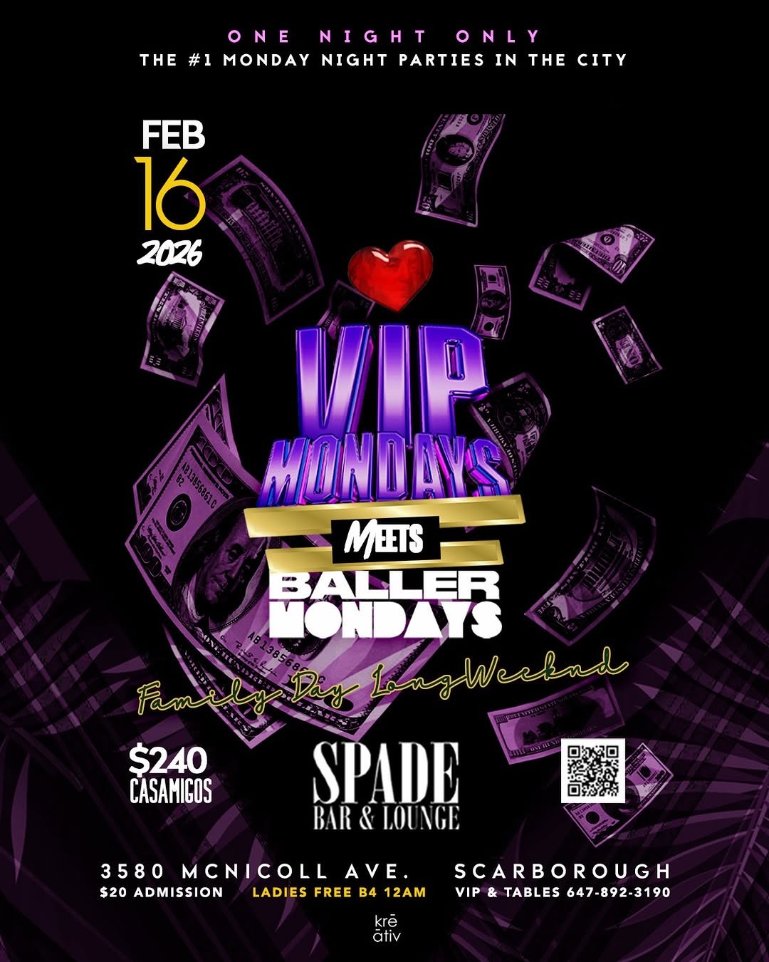 VIP Mondays is back on Family Day Monday, February 16th in collaboration with Baller Mondays in Scarborough at Spade Bar & Lounge (3580 Mcnicoll Ave., Toronto). We’re outside from 10 PM – 3 AM, setting the tone for the long weekend the right way.