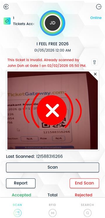 TicketGateway has introduced an application known as 'TG Live Scan' for the event organizer to successfully run the check-in procedure with complete authentication. The TG Live Scan app consists of a bar-code scanner and ticket data of your event. Both these features are interlinked in the application, which ensures the entry of only valid visitors by scanning their ticket barcode and matching it with built-in data. The application is simple, straightforward and easy to run. Additionally, the TG Live Scan app is both reliable and secure.