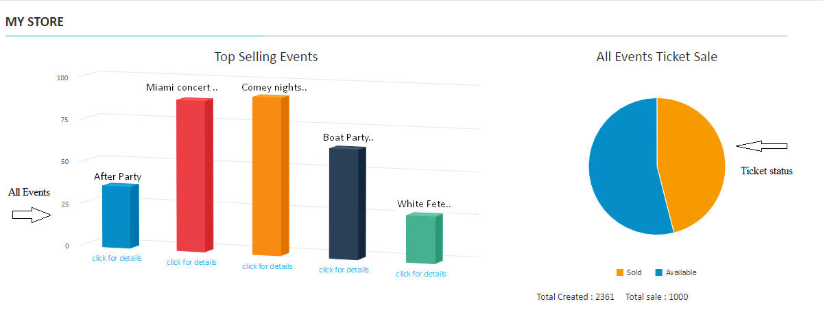 TicketGateway offers lots of ways to see data about your event visually. With charts, you can quickly reference data for sales by top selling events and all event ticket sales. Go to your event's "Manage" page and click "Charts" to get started!